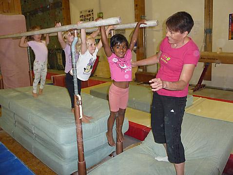 Beim Beobachten der lebhaften Vorschulkinder glaubt man sich beinahe auf einem Spielplatz, denn die Anwesenden zeigen dieselbe Begeisterung. Schwebebalken, Reckstangen, Stufenbarren, Trampolin, Ringe, Bänke und viele Matten stehen bereit. Sie sind zu einem Parcours aufgestellt, zum Aufwärmen der Muskeln. In einer Gruppe üben die Kinder, die Anweisungen ihrer Trainerinnen zu befolgen. Sie lernen ihren Körper kennen und beherrschen, können Muskeln bewusst anspannen und entspannen. Sie üben sich in Konzentration und gewinnen an Selbstvertrauen, wenn sie Hürden meistern, die ihnen anfangs unüberwindbar erschienen. Durch die Leistungen ihrer Mitturnerinnen werden sie angespornt. Die ausgebildeten Trainer/innen verstehen es, die Kleinen spielerisch zu fördern. Feste Strukturen geben ihnen Halt und Sicherheit.