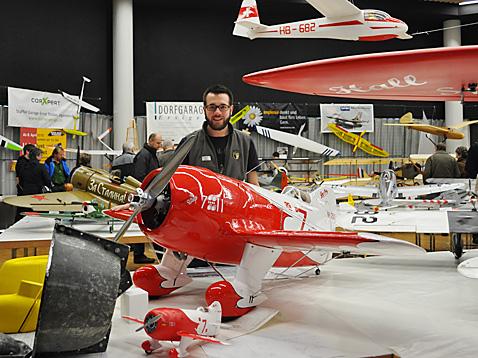 Ein spezielles Highlight inmitten der Ausstellung war die leuchtend rote «Bee Gee R2» von Vereinsmitglied Severin Steck (22). Mit viel Liebe zum Detail und im Massstab 1:4 hatte der angehende Biologe dieses Modellflugzeug vor drei Jahren als Maturaarbeit selbst gebaut, wobei er etwa 1000 Stunden Arbeit, viel Enthusiasmus sowie den «Batzen» von mehreren Weihnachts- und Geburtstagsgeschenken in seinen Flieger investiert hatte. Zusammen mit begeisterten Modellflugzeug-Fans freut er sich nun auf den «Jungfernflug» seiner Maschine, sobald es die Witterungsverhältnisse erlauben.