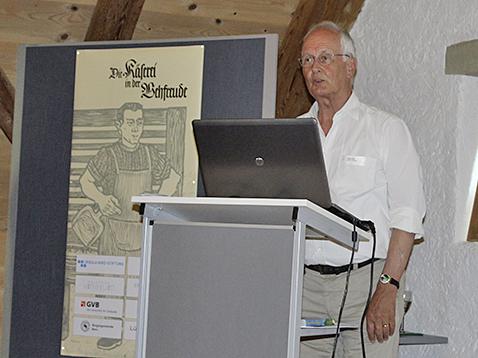 Der Zoologe, Verhaltensforscher, Käseexporteur und Alpinventarisator Ernst Roth, Präsident der Roth-Stiftung Burgdorf, ging in seinem Referat «Sind die obersten Emmentaler wirklich Emmentaler?» auf das Entstehungsgebiet der Emme und die Geschichte der Käseherstellung in unserer Region ein. Das Thema passte perfekt zur aktuellen Sonderausstellung im Zentrum, die dem satirischen Roman «Die Käserei in der Vehfreude» gewidmet ist, den Jeremias Gotthelf bzw. Albert Bitzius im Jahr 1850 im Berliner Verlag von Julius Springer publizierte. Der Schriftsteller und Pfarrer setzte sich darin mit dem kulturellen Umbruch auseinander, den der Boom der Talkäsereien zu seinen Lebzeiten auslöste. Ernst Roth nahm die geladenen Gäste mit auf eine faszinierende Reise durch die Zeit entlang der Emme von ihrem Ursprung im Grenzgebiet zwischen den Kantonen Luzern und Bern bis nach Lützelflüh und Burgdorf. Der Käse avancierte neben Holz, Vieh, Schnaps und Leinen – begünstigt durch die Talkäsereien – zum wichtigsten Exportschlager aus dem Emmental. Das Publikum erfuhr viel Wissenswertes über Milchwirtschaft, Produktion, Lagerung des Käses und über die Handelswege, die den «Emmentaler» in die ganze Welt führten. Seine Ausführungen illustrierte der Referent mit zahlreichen Fotografien, Gemälden, Skizzen, Dokumenten und Holzschnitten aus der Schatzkiste der reichhaltigen Sammlung der Roth-Stiftung, die sein Vater Alfred G. Roth im Jahr 1986 ins Leben rief, um die Kulturgeschichte des Emmentals zu dokumentieren. Die faszinierenden Werke von Künstlern wie Emil Zbinden, Simon Gfeller, Werner Neuhaus, Samuel Hieronymus Grimm, Fred Baumann, Hans Gartmeier oder Albert Anker zeigen die Landschaft und das Leben im Emmental und enthalten zahlreiche historisch wertvolle Informationen.