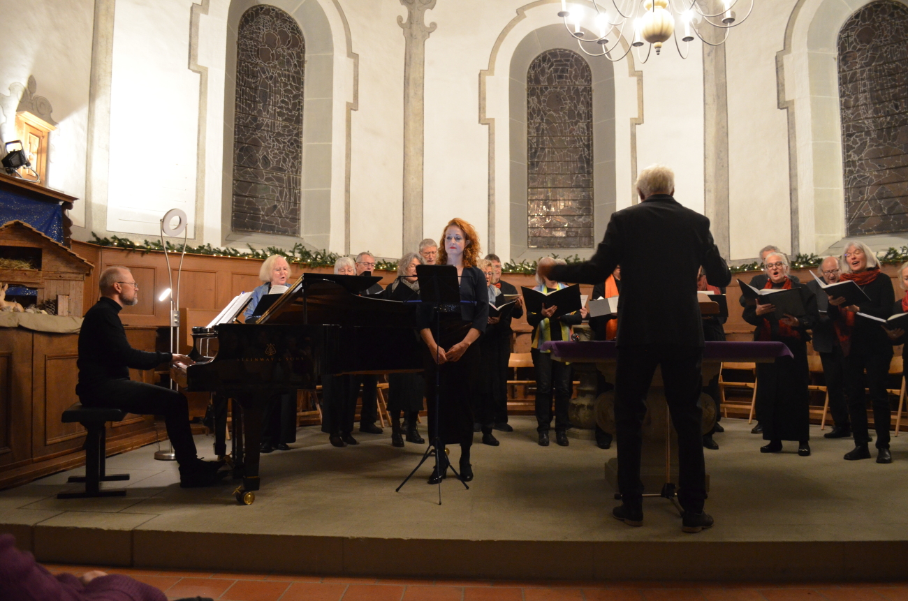 Yvonne Elisabeth Frey, geb. Friedli, ist beruflich als Sopranistin in Berlin tätig, stammt aber aus Heimiswil. Zusammen mit dem Organisten Martin Geiser und dem Kammerchor um Simon Jenny stellte sie ein buntes Programm zusammen, das in der vollen Heimiswiler Kirche mit Begeisterung aufgenommen wurde. Ein Kinderchor der 5. Klasse trug zu dieser Begeisterung bei. Fulminant wurde es, als die mehrchörige vierte Szene aus der Oper «Cavalleria Rusticana» aufgeführt wurde: unten im Chor ein Teil des Kammerchors mit dem Kinderchor und der Sopranistin, begleitet am Flügel von Martin Klopfenstein – oben auf der Empore ein Teil des Kammerchors neben Martin Geiser an der Orgel. Man hatte das Gefühl, die ganze Kirche werde in Schwingung versetzt.