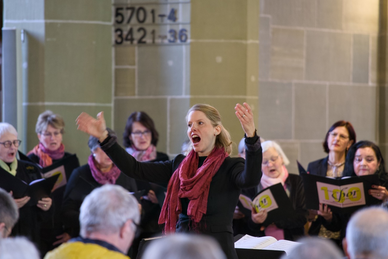 Sabrina Rohrbach-Buri fügte hinzu, wie sehr sie die Arbeit mit ihrem Chor erfreue, und lobte dessen Offenheit für Musik, auch mal über die klassische Chormusik hinaus. Dies zeigte sich unmittelbar im anschliessend gesungenen Popsong «Vater unser» von Hanne Haller.