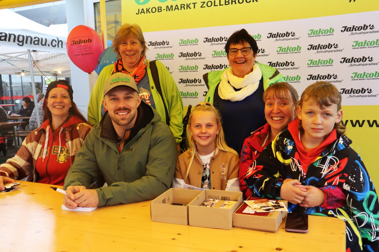 01.10.2025 Region, Foto, RegionMit einem Gemischtwarenladen, geführt von Fritz und Elisabeth Jakob in Rüderswil, wurde vor 80 Jahren der Grundstein zum heutigen Jakob-Markt in Zollbrück gelegt. Heute zeichnet er sich aus mit 180 Mitarbeitenden und den fünf Betriebszweigen Einkaufszentrum, Schuhparadies, Gartencenter, Wollversand und Teamsport. In dritter Generation wird der Jakob-Markt von den Geschwistern Oliver und Romina Jakob geführt. Am vergangenen Wochenende bot das Unternehmen seinen Kundinnen und Kunden einen 10-Prozent-Jubiläums-Einkaufsrabatt. Weitere attraktive Angebote für Gross und Klein lockten scharenweise Besucherinnen und Besucher an, die die festliche Stimmung auf dem Areal genossen. Die Schwingerfans von Fabian Staudenmann stellten sich am Freitag geduldig in die Reihe für ein Autogramm.