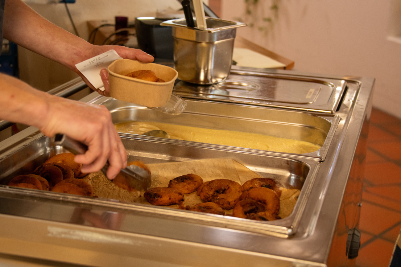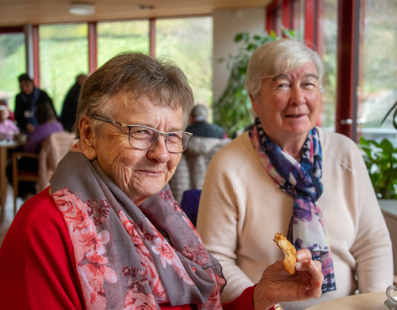 12.11.2025 Kirchberg, Aktuell, Foto, KirchbergEs war ein heiterer Nachmittag mit Unterhaltungsmusik, zwei, drei Marktständen und ganz vielen «Öpfuchüechli». Der «Öpfuchüechlitag» im Restaurant des Wohn- und Pflegeheims St. Niklaus in Kirchberg ist jeweils ein besonderes Highlight im Jahreskalender – nicht nur für Bewohnende und ihre Angehörigen, sondern auch für externe Besucherinnen und Besucher. Rund 80 Kilogramm Boskop-Äpfel verarbeitete das Küchenteam am vergangenen Samstag zu «Öpfuchüechli». Die köstlichen Apfelringe im Teig wurden auf Wunsch mit Vanille-Sauce angerichtet. Natürlich konnte man sich die Leckerei auch verpacken lassen, um sie zu Hause zu geniessen. Geschäftsführerin Ursula Hafed-Ruchti war erfreut über so viele Gäste und versprach, dass der «Öpfuchüechlitag» auch im Jahr 2026 wieder stattfinden werde.