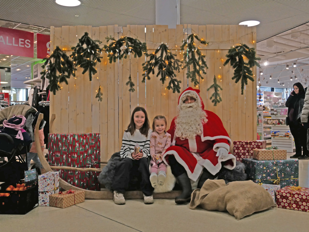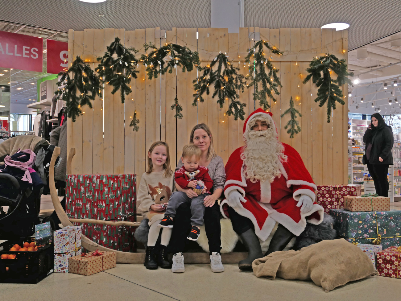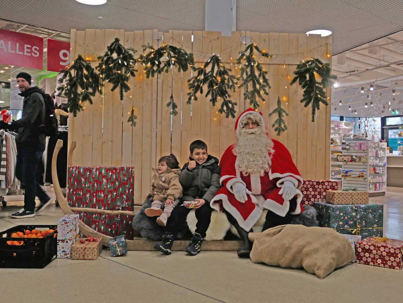 10.12.2025 Burgdorf, Burgdorf, Kultur, Jugend, FotoZahlreiche Kinder und Eltern freuten sich am vergangenen Samstag über den Besuch des «Samichlous» im Einkaufszentrum Neumarkt in Burgdorf. Der Mann in Rot zauberte unzähligen Besucherinnen und Besuchern ein Lächeln ins Gesicht – besonders die jüngsten Gäste strahlten beim persönlichen Treffen und hatten leuchtende Augen. Während sich einige Kinder schüchtern und nur in Begleitung ihrer Eltern neben den «Chlous» wagten, liefen andere mutig und voller Freude direkt auf ihn zu. Zur Belohnung erhielten alle ein «Chlousesäckli», Mandarinen sowie ein gedrucktes Erinnerungsfoto vom professionell eingerichteten Fotoservice.