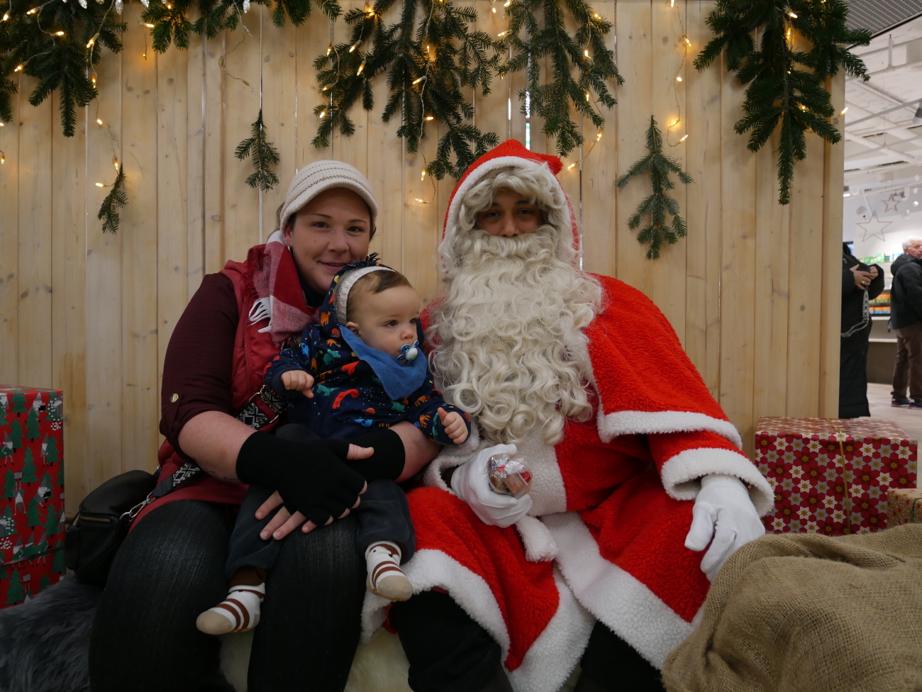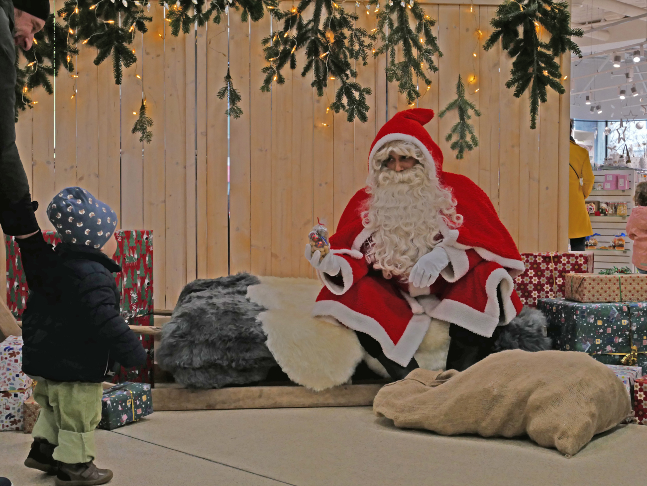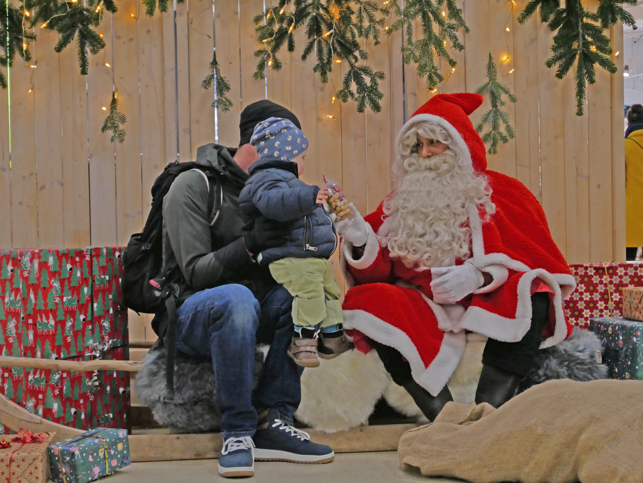 10.12.2025 Burgdorf, Burgdorf, Kultur, Jugend, FotoZahlreiche Kinder und Eltern freuten sich am vergangenen Samstag über den Besuch des «Samichlous» im Einkaufszentrum Neumarkt in Burgdorf. Der Mann in Rot zauberte unzähligen Besucherinnen und Besuchern ein Lächeln ins Gesicht – besonders die jüngsten Gäste strahlten beim persönlichen Treffen und hatten leuchtende Augen. Während sich einige Kinder schüchtern und nur in Begleitung ihrer Eltern neben den «Chlous» wagten, liefen andere mutig und voller Freude direkt auf ihn zu. Zur Belohnung erhielten alle ein «Chlousesäckli», Mandarinen sowie ein gedrucktes Erinnerungsfoto vom professionell eingerichteten Fotoservice.