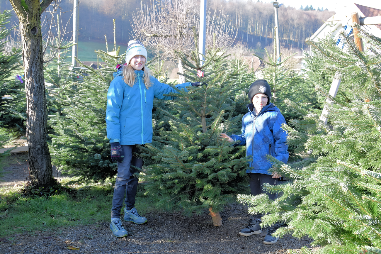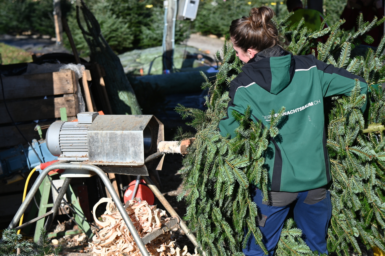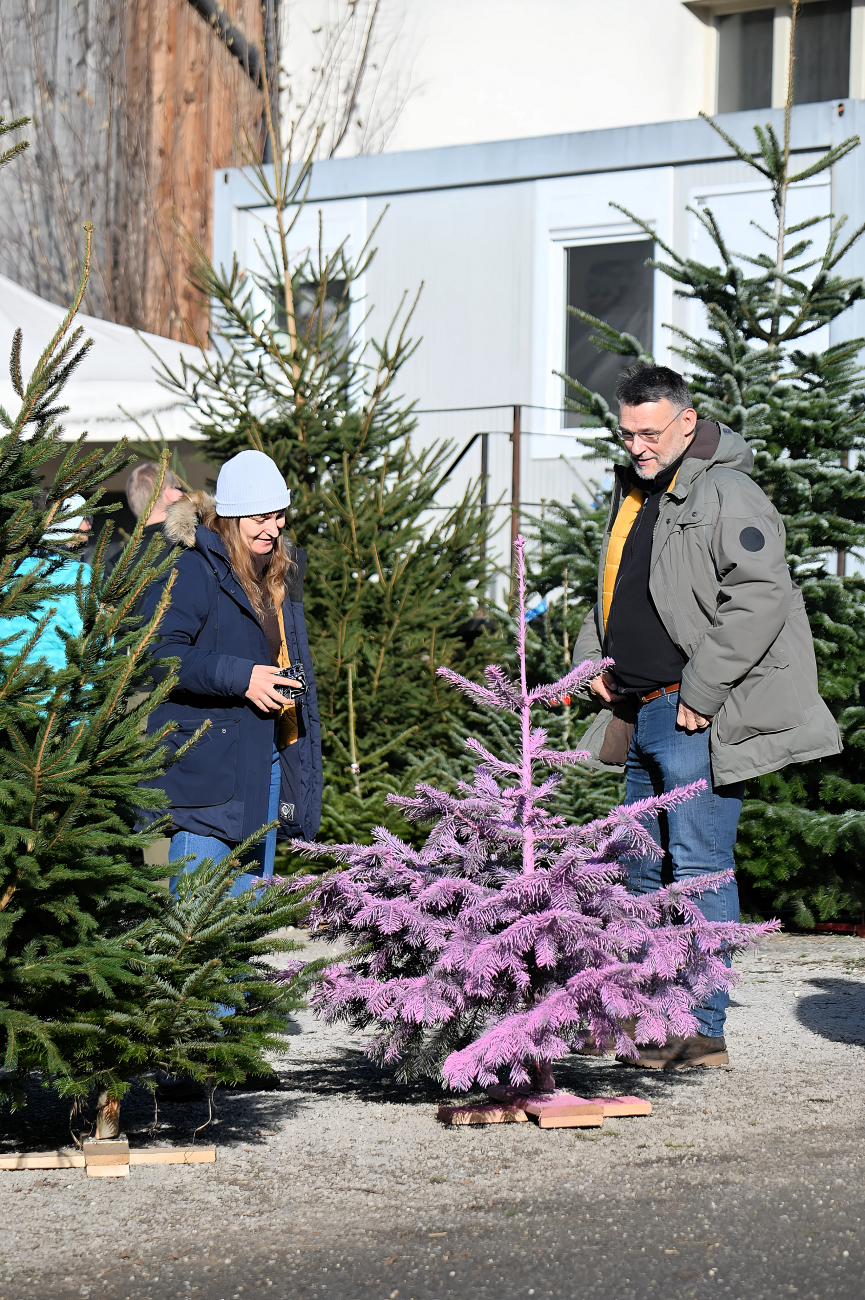 An den Hauptverkaufstagen mit dem Weihnachtsmarkt vom 19. bis 21. Dezember 2025 nutzten Hunderte Besucherinnen und Besucher die rie- sige Auswahl. Köstlichkeiten an den Marktständen wie die Grillbratwurst pro gekauftem Baum, heisse Getränke, Süsses, Gebackenes, feine Saucen, ver-