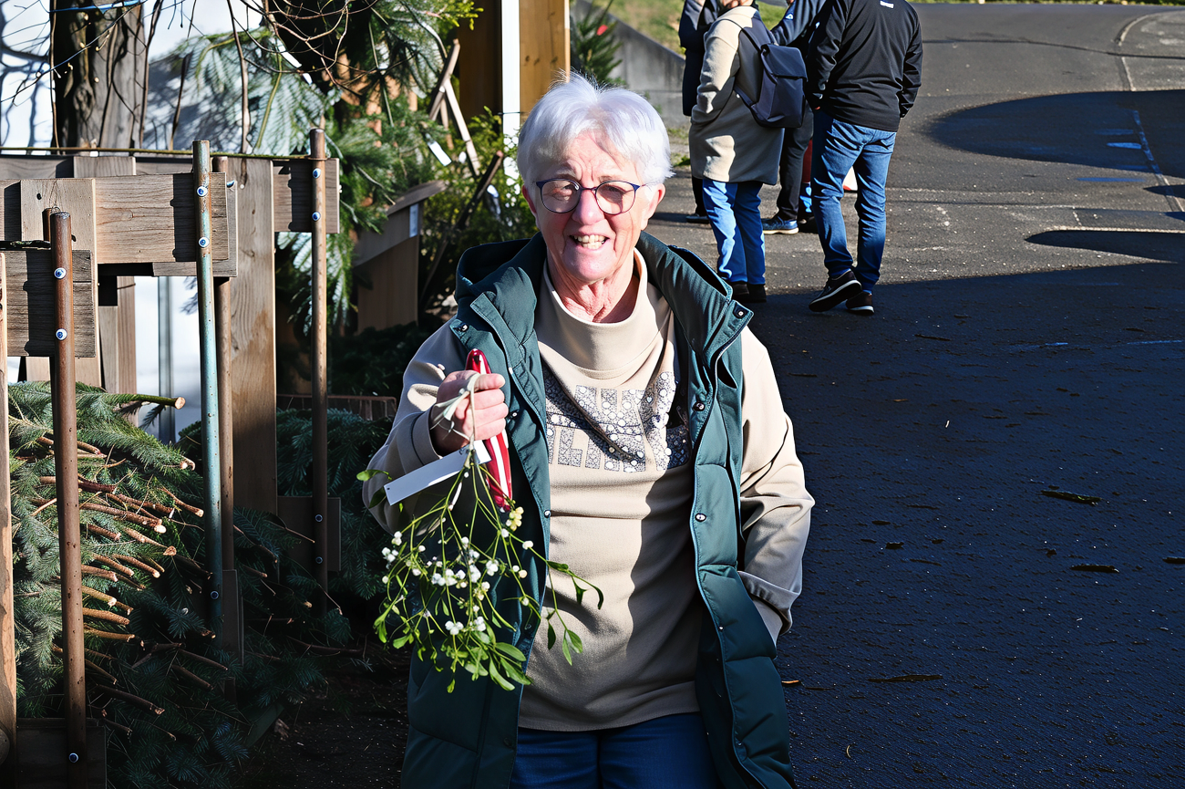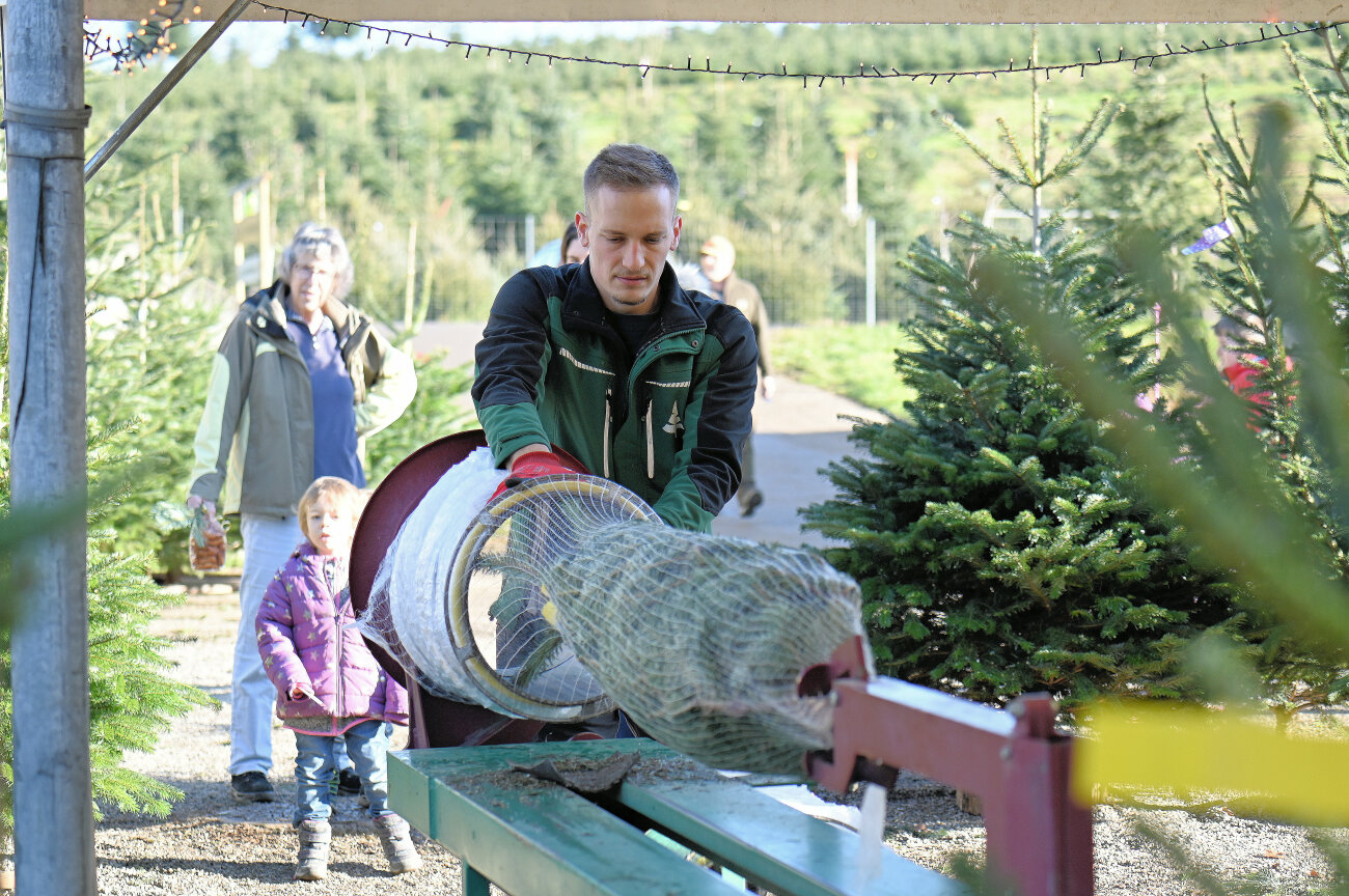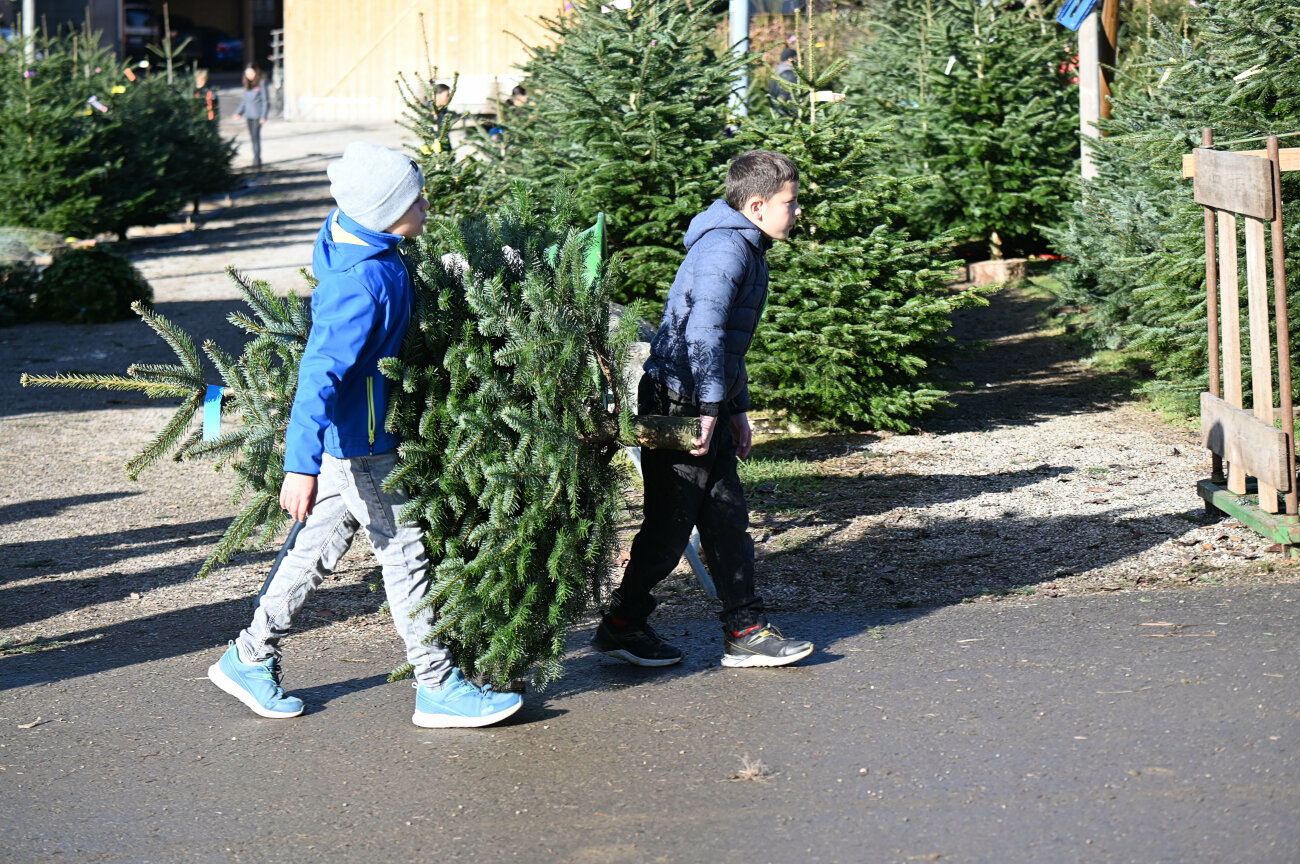 An den Hauptverkaufstagen mit dem Weihnachtsmarkt vom 19. bis 21. Dezember 2025 nutzten Hunderte Besucherinnen und Besucher die rie- sige Auswahl. Köstlichkeiten an den Marktständen wie die Grillbratwurst pro gekauftem Baum, heisse Getränke, Süsses, Gebackenes, feine Saucen, ver-