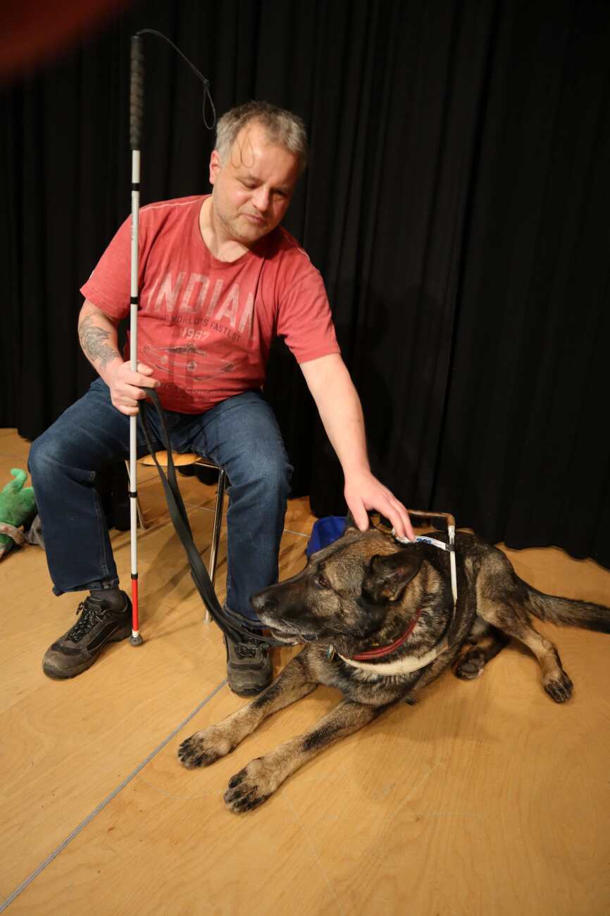 Geschickt führte die Moderatorin Silvan Spycher zu den Themen, die den Anwesenden vermittelten, was das Leben mit all seinen täglichen Herausforderungen von einem blinden Menschen fordert. Er zeigte auf, was ihm als alltägliche Hilfsmittel zur Verfügung stehen und was ihn im Besonderen erfreuen könnte. So vieles bleibt ihm verwehrt. Er ist Töff-Fan und würde gerne selber Töff fahren können – auf welcher Marke auch immer – freue sich jedoch auch, als Sozius mit dabei zu sein. Hiermit waren eventuell anwesende Töff-Fahrer/innen angesprochen, an Silvan Spychers Wunsch zu denken, gerne einmal mitzufahren. Zudem ist er ein grosser Musikfreund und lässt sich gerne als DJ engagieren.