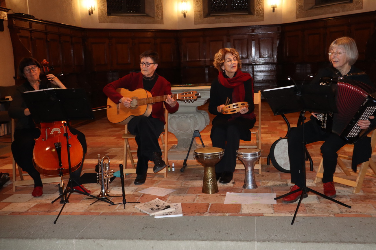 Alle vier Frauen sind Koryphäen auf ihren verschiedenen Instrumenten. Akkordeon, Gitarre, Cello, Saxophon, Euphonium, Perkussion und Flöten wurden innerhalb eines Stückes ausgewechselt, wie wenn es nichts Einfacheres geben würde. Mit feinen Stimmen begleiteten die Sängerinnen die Musik und ihr Auftritt verriet ihre Freude und Begeisterung.