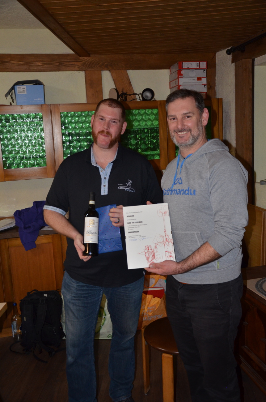 Vor einem Jahr trat Rolf von Ballmoos nach langen Vorstandsjahren, zum Schluss als umsichtiger Kassier, von seinem Amt zurück und pausiert seither auch als aktiver Hornusser. Wegen Auslandaufenthalts wird ihm von den Mitgliedern per Akklamation die Ehrenmitgliedschaft für sein Wirken verliehen. Weiter wurden Jan Niffenegger und Pascal Stettler für ihre Vorstandstätigkeit geehrt und konnten je ein Präsent entgegennehmen.