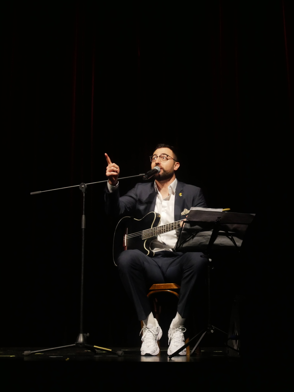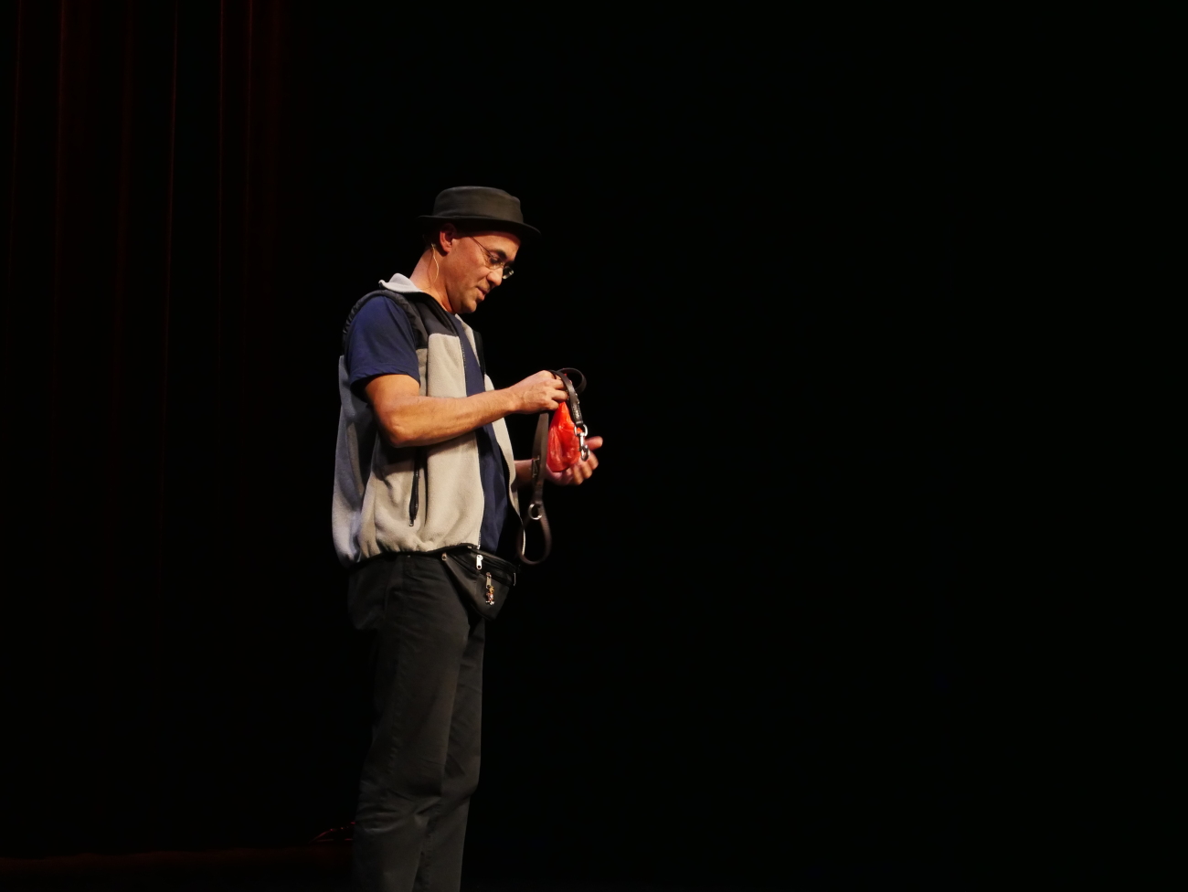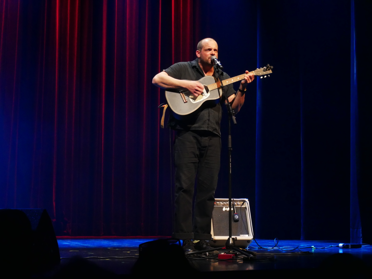 André Willmund folgte mit Gitarre und einem Ausschnitt aus «Wer is(s)t hier die Wurst?», in dem eine beim Einkaufen vergessene Wurst zum Ausgangspunkt für Überlegungen zu Beziehungen und inneren Konflikten wurde.