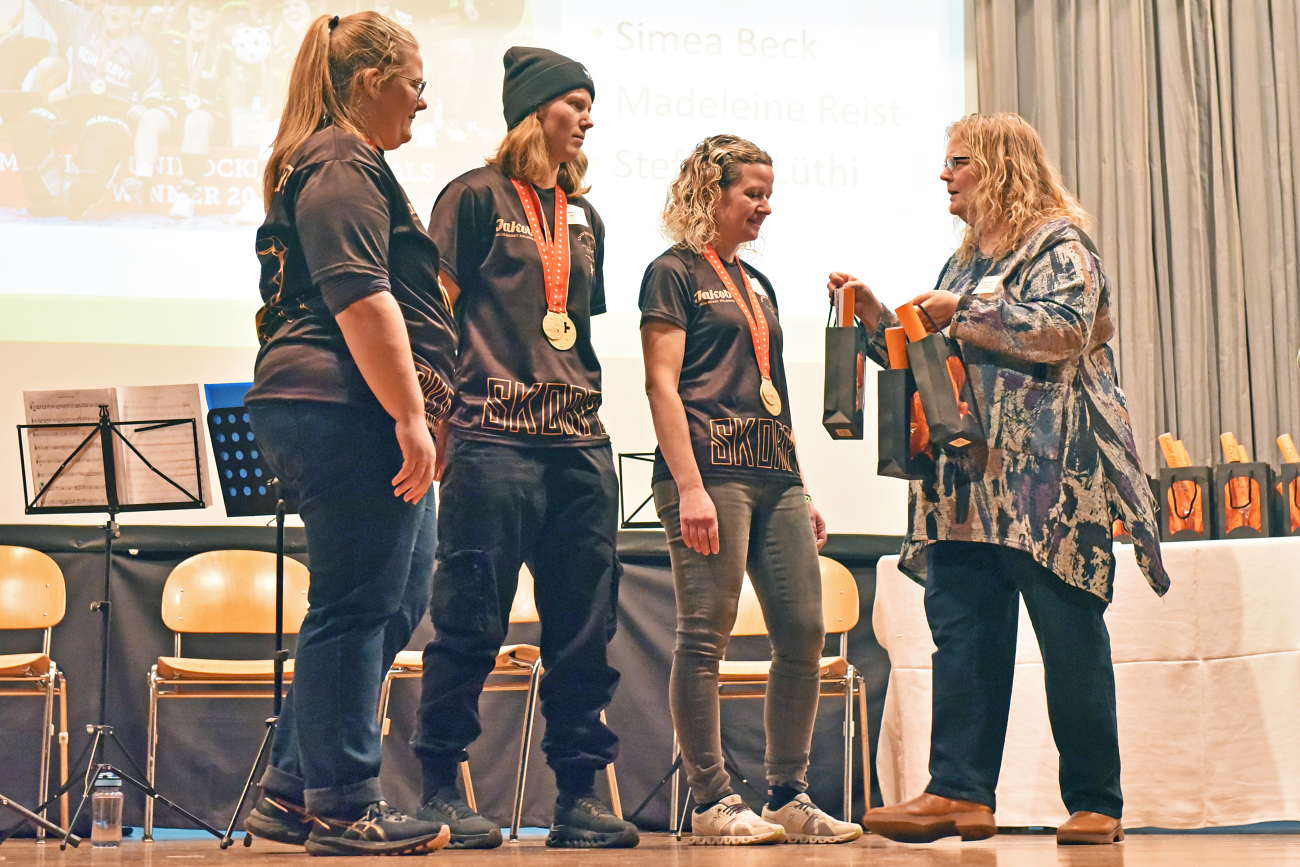 Die Ehrungen begannen unter dem Motto «Dranbleiben, Motivation, Rückschläge einstecken können». Die Spielerinnen vom Unihockeyklub UHV Skorpions waren mit ihren sportlichen Leistungen schweizweit aufgefallen und konnten somit die Ehrung stolz entgegennehmen. Der 3. Rang von Daniel Stalder an der Schweizermeisterschaft Tractor Pulling hatte ebenso den gebührenden Applaus verdient. Die jungen Athletinnen und Athleten vom TV Lützelflüh Athletics Cristina Morgentaler (Kugelstossen), Nils Schäkel (Lauf, Hochsprung, Kugelstossen), Lucy Hirsbrunner (Lauf) und das Team von U12 Girls, Kathja Peter, Valentina Mosimann, Ziva Lehmann, Lina Rüfenacht, Sophie Hug und Elea Hausammann erwiesen dem Emmentaler Sportverein mit besten Rängen grosse Ehre.