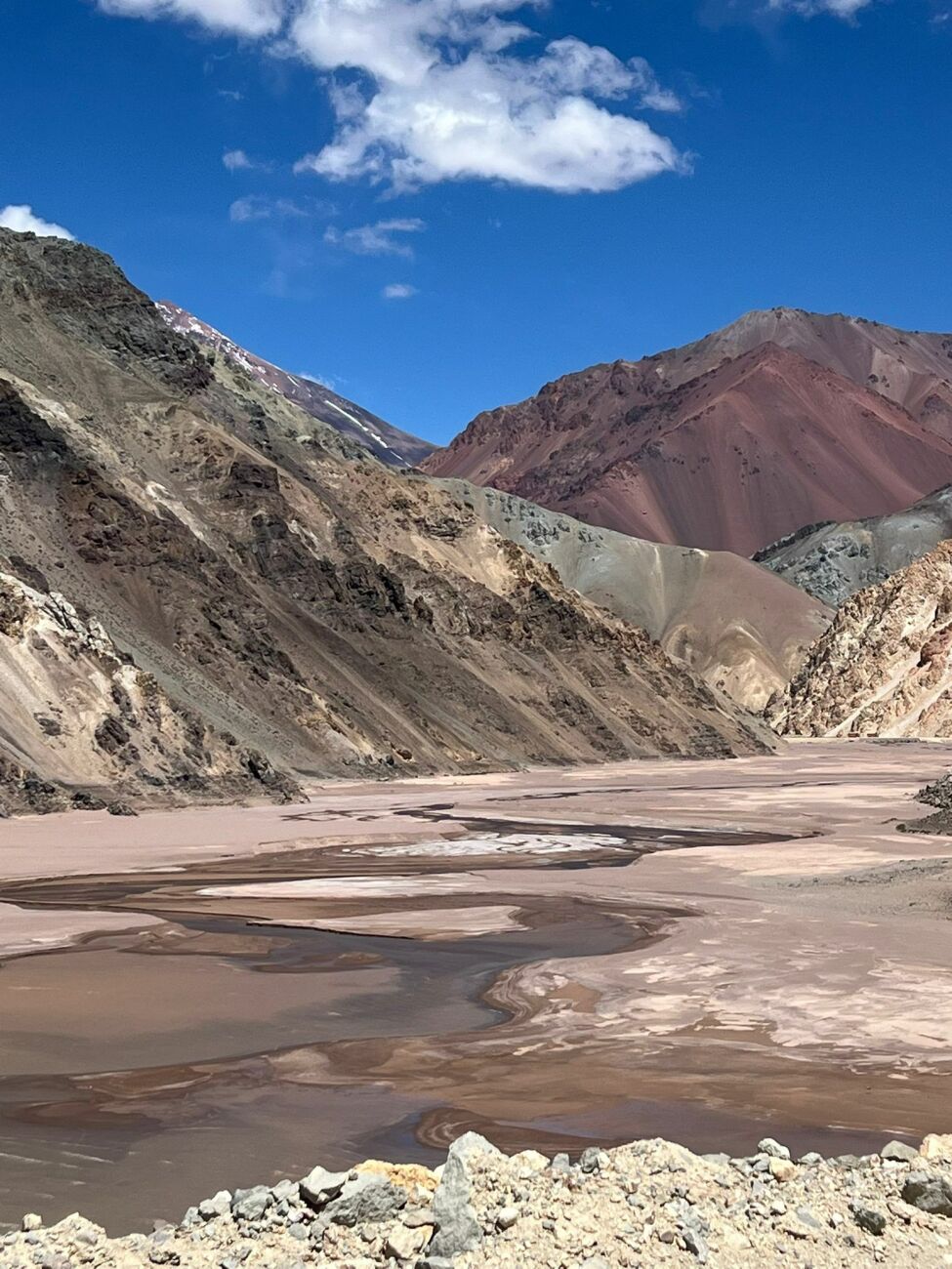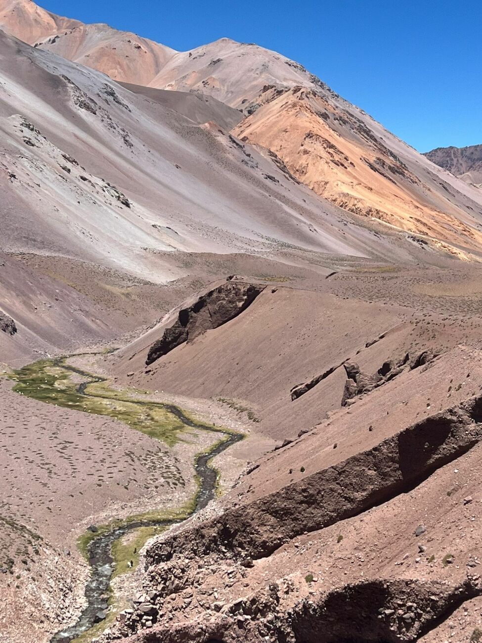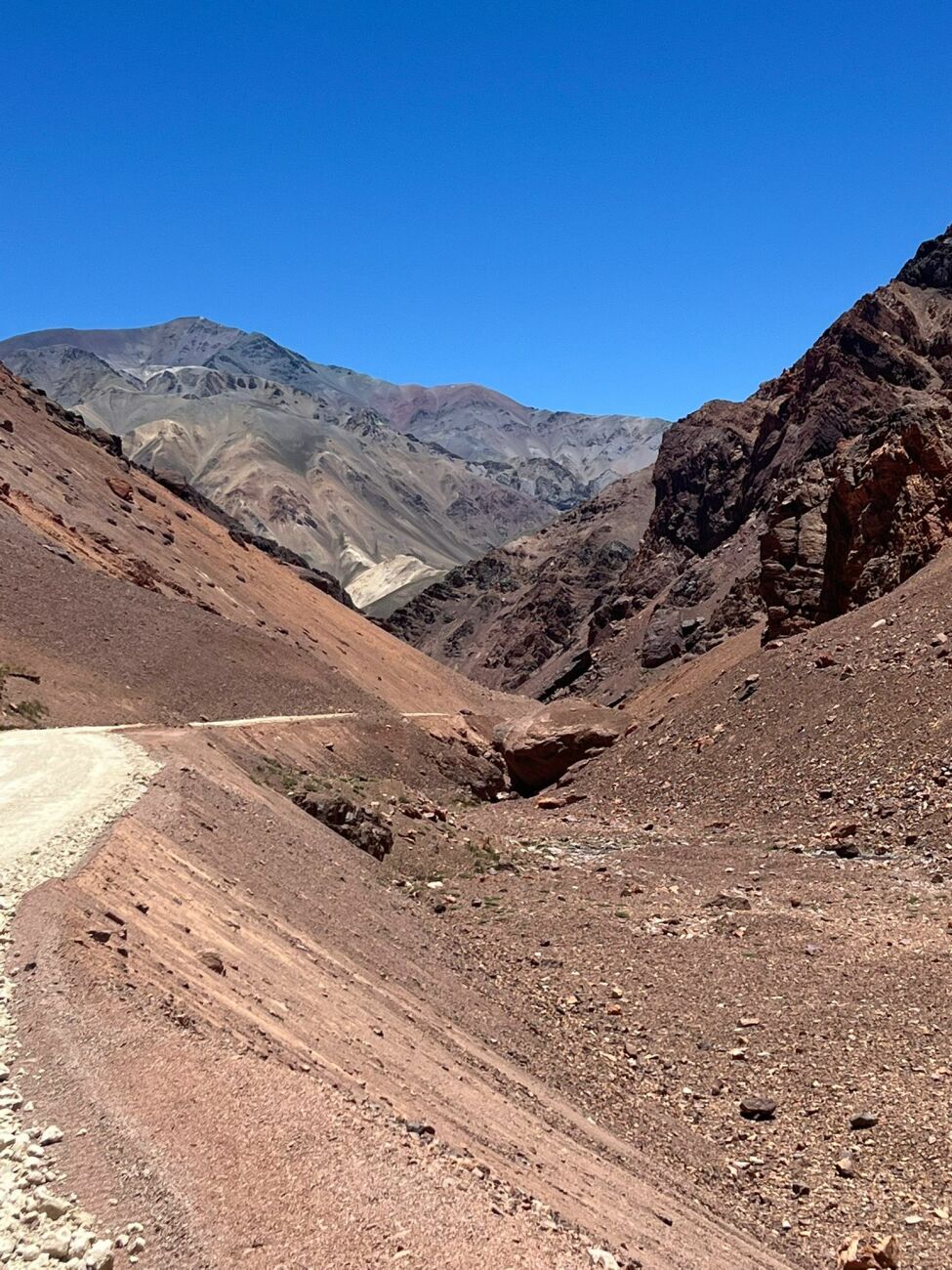 «Die Tour beginnt talaufwärts nach Hurtado. Diesem Ort verdankt das ganze Tal seinen Namen und er ist nebst Pichasca der Hauptort. Dort gabelt sich die Strasse: Einerseits führt der Weg talaufwärts nach Las Breas, wo die öffentlich zugängliche Strasse aufhört, andererseits steigt der Weg über einen Gebirgszug ins Nachbartal, das bekanntere Elqui-Tal. Ab sofort ist die Strasse nicht mehr asphaltiert, allerdings befindet sie sich im Ausbau und wird in absehbarer Zeit mit einem Belag überzogen sein. Kurz vor Vicuña ist die Strasse wieder befestigt und zweigt dann rechts ab. Nun warten rund 200 abwechslungsreiche Kilometer auf uns. Der erste Teil das Elqui-Tal aufwärts ist noch wenig spektakulär, wir rollen über eine gut ausgebaute Asphaltpiste. Sie führt zum chilenischen Grenzübergang, noch rund 50 Kilometer von der argentinischen Grenze entfernt. Heute ist der Andrang zum Glück klein, wir sind Fahrzeug Nummer 23. Die Autos werden registriert, damit unterwegs keines verloren geht. Fehlt auf der anderen Seite des Passes eine Nummer, wird eine Suchaktion ausgelöst. Die Durchquerung der Anden könnte sonst durchaus gefährlich werden. Die Leute am Zoll haben heute Zeit; rund 50 Übertritte pro Tag machen jede Kontrolle zu einer willkommenen Abwechslung. Während den Ferien ist der Andrang schon mal grösser, was zu längeren Wartezeiten führen kann. Wir haben Glück, nach einer Viertelstunde dürfen wir passieren. Ab sofort geht es auf einer Schotterpiste steil bergauf zu einem grossen Stausee. So viel Wasser an einem derart trockenen Ort kommt völlig überraschend, ist aber durch die Höhenlage erklärbar. Schmelzwasser des winterlichen Schnees und der noch vorhandenen Gletscher wird hier gespeichert und kontrolliert ins Elqui-Tal abgelassen. Auf der Weiterfahrt offenbart sich die ganze Farbenpracht der Anden. Je nach Sonneneinstrahlung leuchten die Bergflanken rot, grün, orange, violett oder schwarz. In den Tälern fliesst offenes Wasser, gesäumt von Salzablagerungen und sattgrünem Gras. Auch auf 4000 Metern über Meer weiden noch Ziegen, von ihren Hirten ist nichts zu sehen. Schliesslich erreichen wir die Passhöhe auf 4755 Metern über Meer. Körperliche Bewegung ist hier merklich anstrengender als noch in Seròn, trotzdem lassen meine Frau und ich es uns nicht nehmen, die Grenze zu Fuss zu überqueren. Der höchste Andenübergang zwischen Chile und Argentinien ist im Winter zeitweise geschlossen, auch im Sommer ist der Übergang nur bei guter Witterung möglich. Jetzt aber ziehen sich nur noch vereinzelte Schneefelder der Strasse entlang, in der Höhe glänzen kleine Gletscher. Der Übergang über die Anden soll hier bald ganzjährig möglich sein, weshalb ein 13,8 Kilometer langer Tunnel auf rund 4000 Metern Höhe dereinst die Región de Coquimbo (Chile) und die Provincia de San Juan (Argentinien) verbinden wird. Die Route wäre eine wichtige Entlastung des für die Industrie wichtigen Andenübergangs Los Libertadores. Das Projekt verzögert sich allerdings, sodass die zu erwartende Beeinträchtigung dieses einzigartigen Naturraumes noch auf sich warten lässt. Der Übergang würde nicht nur die Verbindung von Pazifik und Atlantik verbessern, sondern auch der Ausbeutung der argentinischen Kupfervorkommen in den Anden Vorschub leisten. Der Plan des argentinischen Präsidenten Milei, die Region San Juan zu einem Kupfer-Hotspot zu machen, hätte wohl katastrophale Folgen für das Naturwunder «Anden». Aber bleiben wir im Hier und Jetzt: Unglaublich, welche Schönheit sich bei unserer Passfahrt offenbart. Die Abfahrt auf der argentinischen Seite ist kürzer, allerdings nicht weniger beeindruckend: Genuss pur! In Rodeo finden wir eine ruhige Unterkunft, die als Ausgangspunkt für weitere Aktivitäten dient. Hervorzuheben ist dabei sicher die Beobachtung einer Gruppe von Kondoren, die uns ihrerseits kaum beachtet. Nach einer zweiten Übernachtung kehren wir auf der selben Route, auf der wir gekommen sind, nach Seròn zurück. Die Fahrt über den Agua Negra ist aufs Neue eine Wucht, da sich in umgekehrter Richtung neue, atemberaubende Perspektiven eröffnen, die noch lange nachwirken werden.»