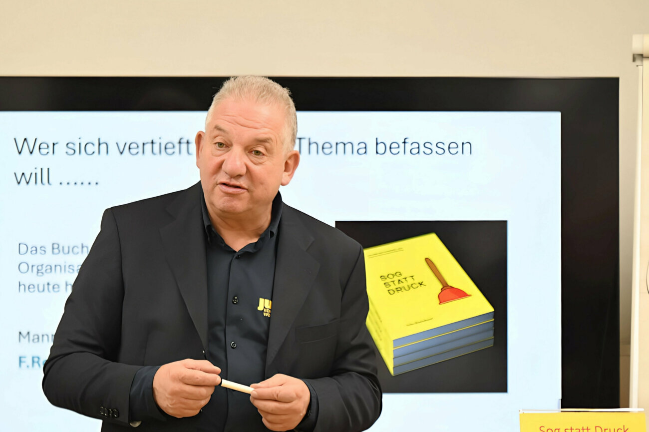 «Sog statt Druck» heisst die Zauberformel von Rosenbaum, was übrigens auch der Titel seines Buches ist und für Unternehmensberatende und KMUs eine echte Hilfe darstellt. «Sog statt Druck» bedeutet, mit allen Mitteln auf Kundenzufriedenheit zu setzen und die Kunden/-innen wiederum als aktive Werbeträger/innen zu nutzen. Während sehr viele Unternehmen bis zu 95 Prozent ihres Werbebudgets für den erhofften Neuverkauf von Produkten ausgeben, setzt Geschäftsführer Rosenbaum mit Unterstützung des Verwaltungsrats auf eine Umverteilung. Mit 60 Prozent Werbekosten für die Firma und die neutralen «Jutzi git Gutzi»-Plakate oder -Inserate generiert man freie Gelder für den Kundenstamm und dessen Betreuung. Zufriedene Kundinnen und Kunden bringen indirekt oder direkt zufriedene Neukunden/-innen. Das ist das Ziel und wird so umgesetzt. Ein Nachfrage-Sog statt Marketing-Druck.