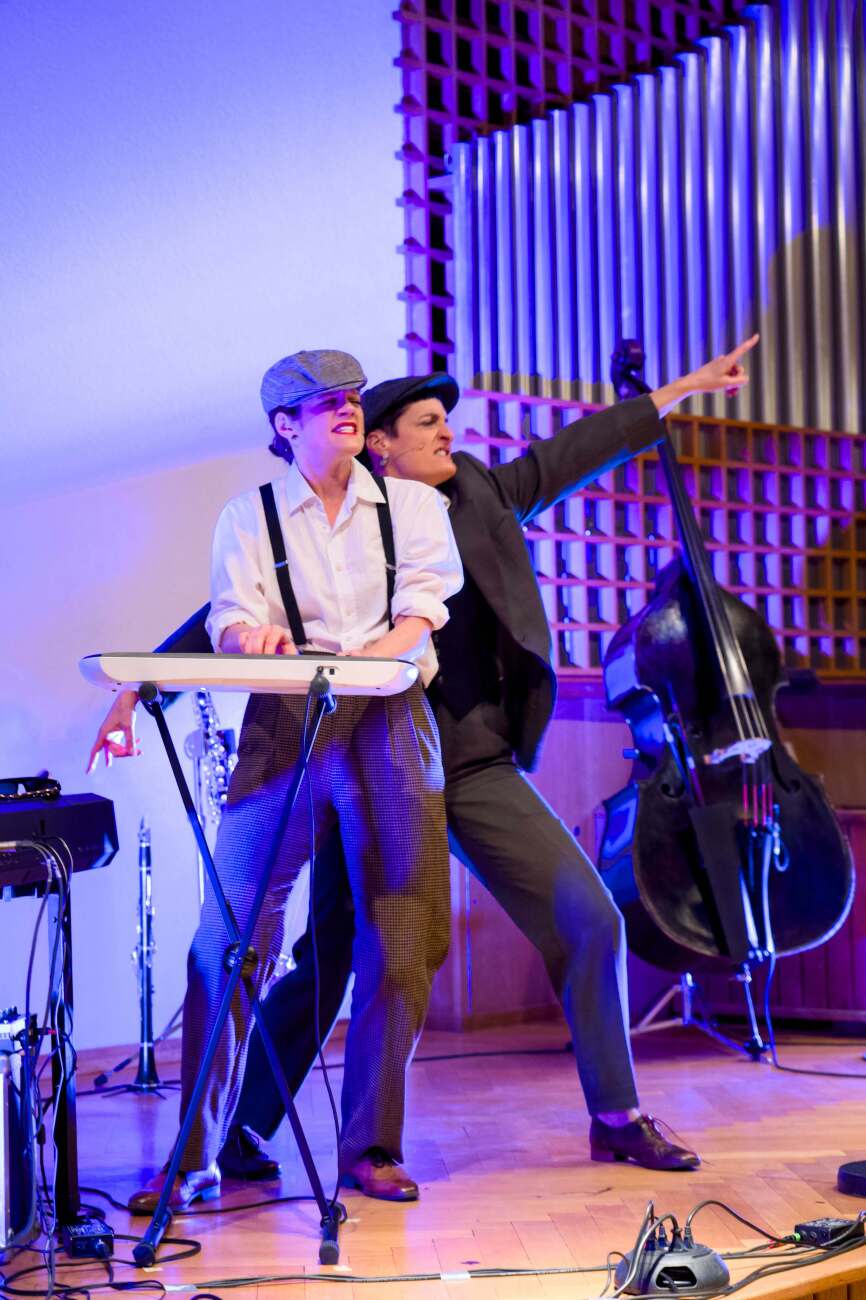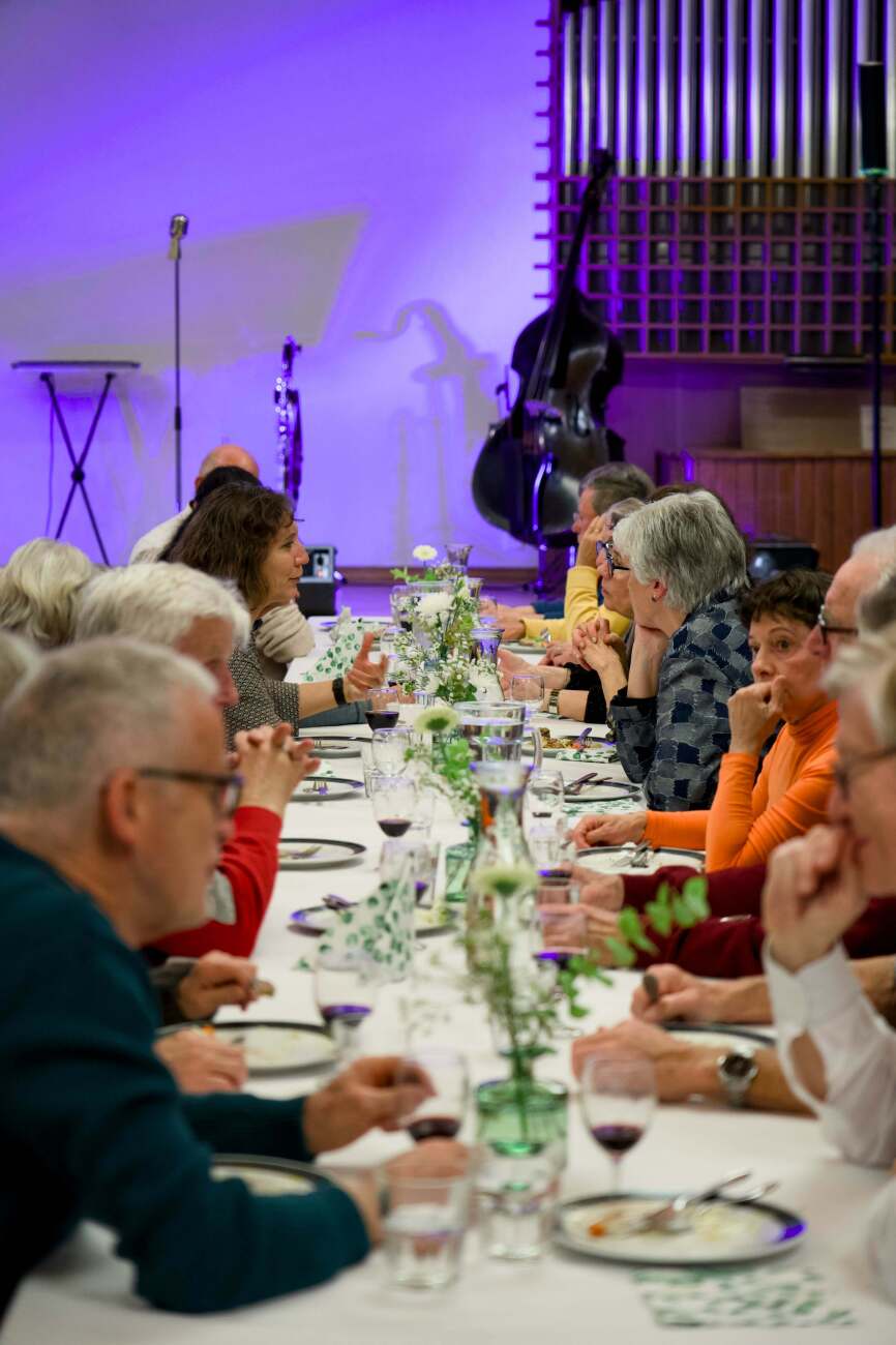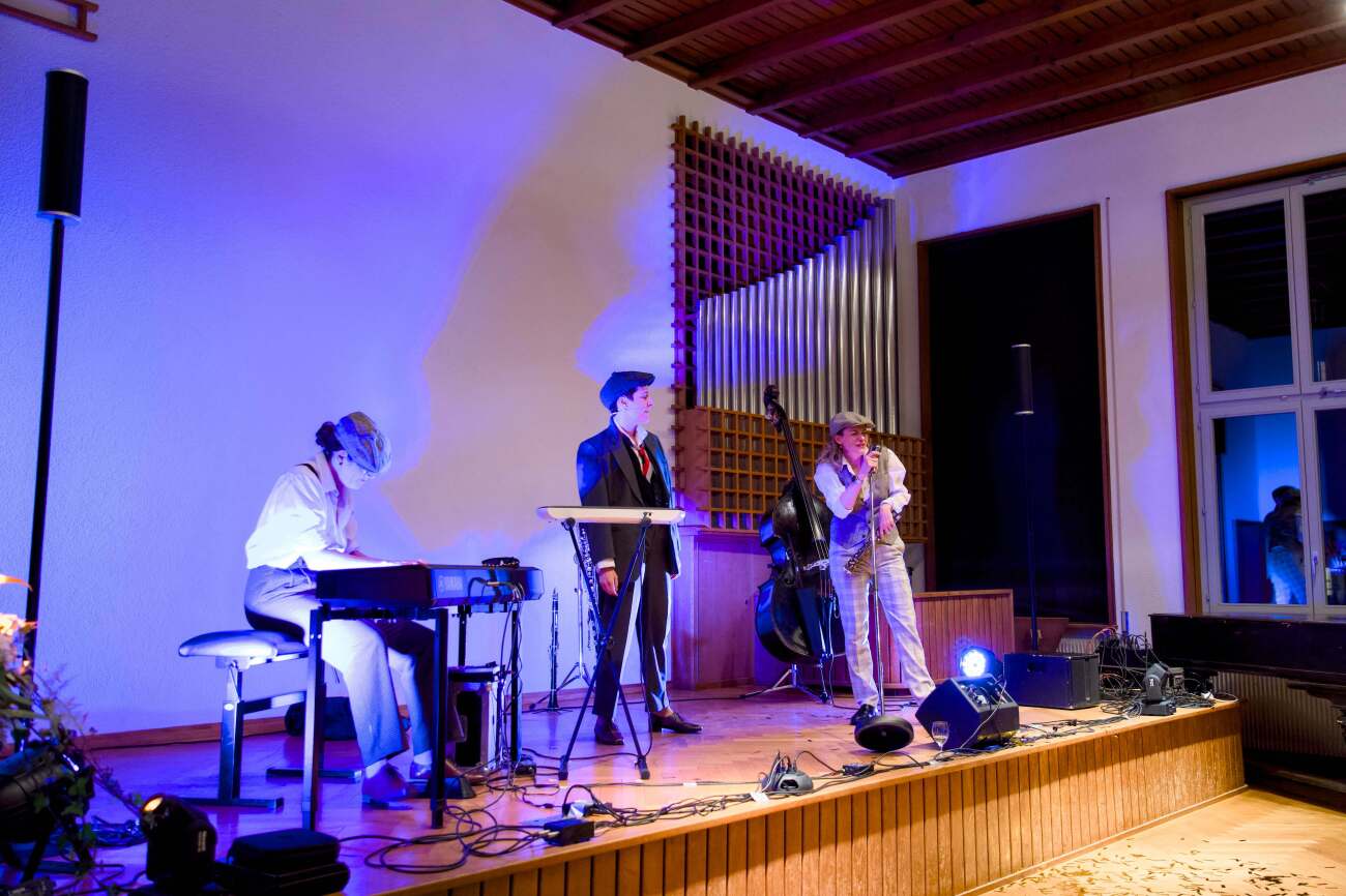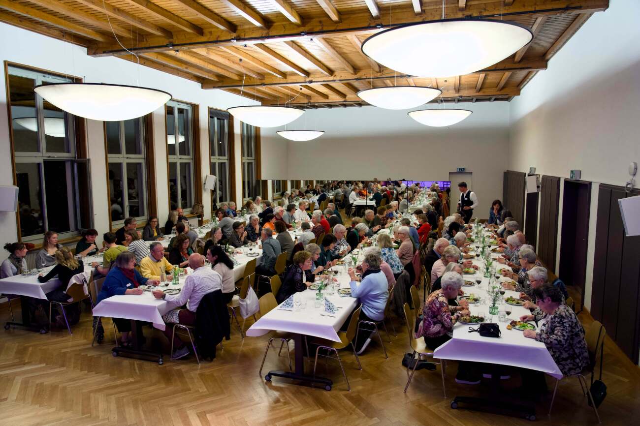 Schon beim Apéro trafen sich alte und neue Bekannte, es wurde geplaudert, sich ausgetauscht und gelacht. Dann lud die Freiwilligen-Koordinatorin Heike Imthurn zum Abendessen im ersten Stock ein. Als Gastgebende fungierten die Mitarbeitenden: Die Sozialarbeiterin schenkte Prosecco ein, die Präsidentin servierte Kartoffelgratin, die Sekretärin und der Katechet wirkten in der Küche, der Pfarrer offerierte Rivella und Wein. Nach dem Essen bedankte sich Co-Präsidentin Inès Walter Grimm bei den Freiwilligen für deren grosses Engagement. Und dann überraschten die drei Comedy-Musikerinnen von «siJamais» als «Party-Crasherinnen» mit Witz und bester Musik.