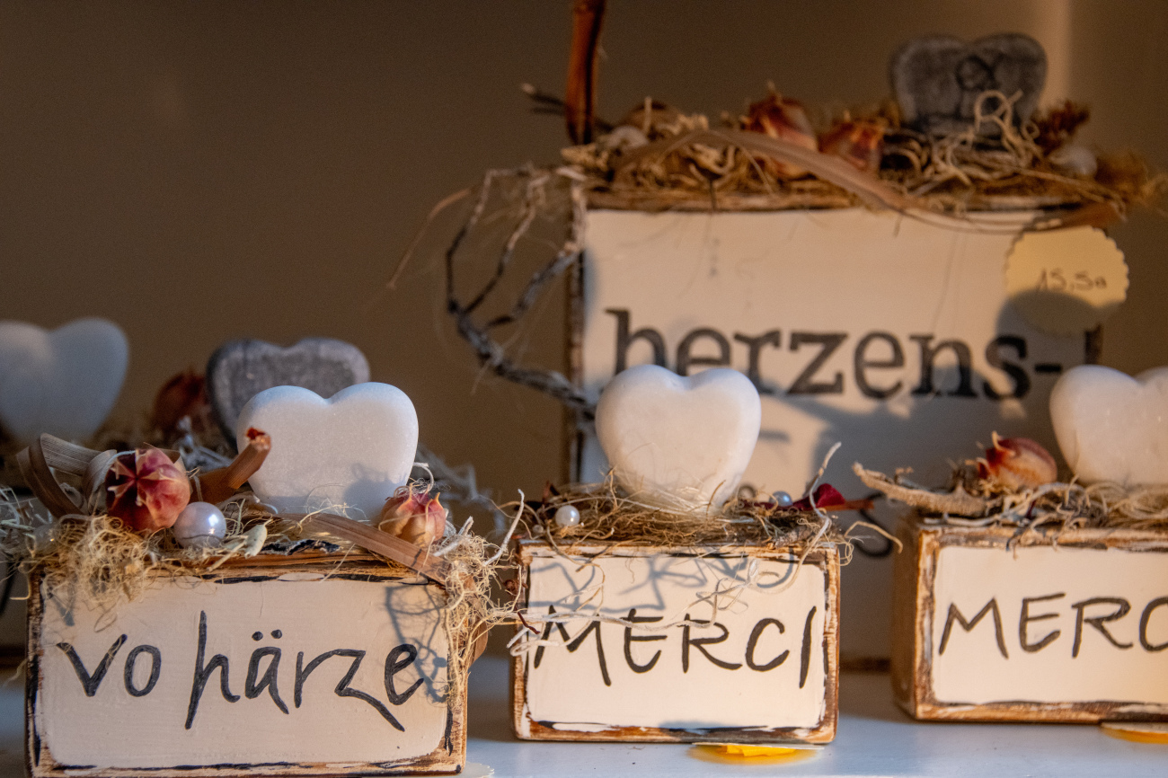 19.11.2025 Aktuell, Aktuell, Oberburg, FotoAn der Weihnachtsausstellung im «Jakob’s» in Oberburg präsentierten Beatrice Hofer und Christine Held am vergangenen Samstag wiederum aussergewöhnlich schöne und originelle Geschenkideen. Vom kleinen Mitbringsel bis zum dekorativen, aufgefrischten Kleinmöbel findet man im «Lädeli» an der Emmentalstrasse 129 so ziemlich alles. Und erst noch zu erschwinglichen Preisen. Die beiden umtriebigen Frauen führen das «Jakob’s» in ihrer Freizeit: «Aus purer Freude am Erschaffen kreativer Geschenke und Dekorationen», präzisiert Beatrice Hofer. Und Christine Held ergänzt: «Es ist einfach schön, zu sehen, dass die Leute unsere Arbeit schätzen und sich immer wieder gern in unserem ‹Lädeli› umschauen.»