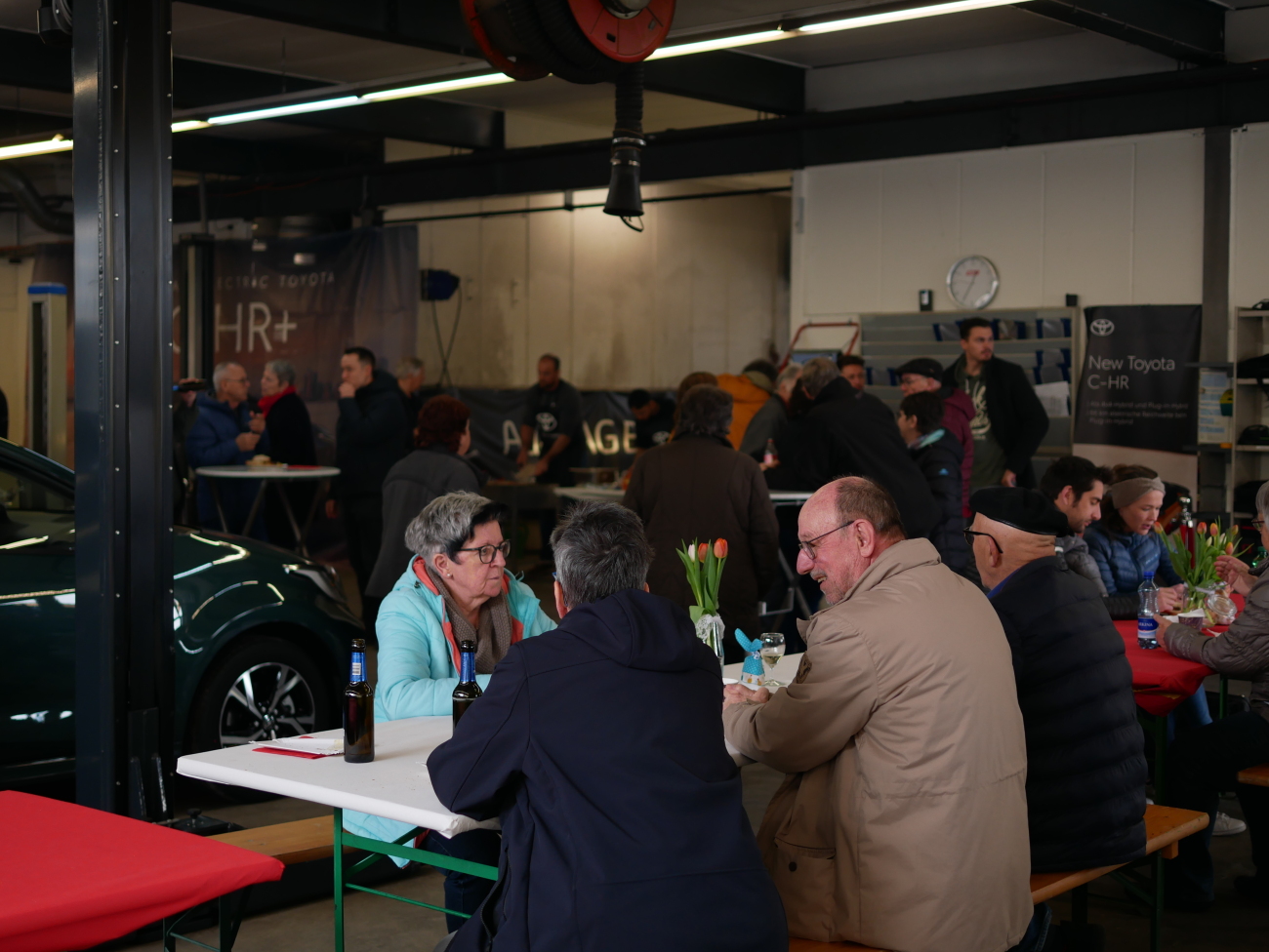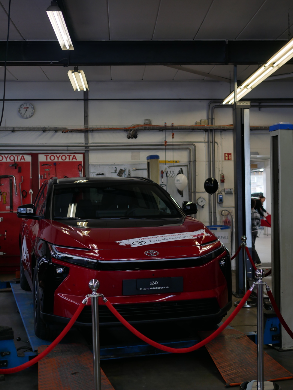 Die Besuchenden unterhielten sich angeregt, bestaunten die Fahrzeuge oder unternahmen Probefahrten. Zum krönenden Abschluss der Ausstellung offerierte die Auto AG Burgdorf Matthias Aeschbacher einen eleganten Toyota bZ4X – vollelektrisch und mit Allrad.