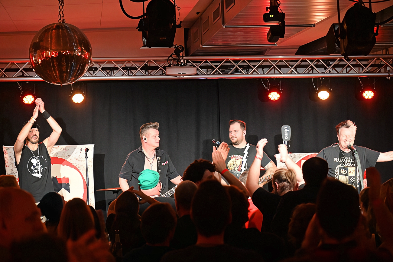 Grosse Schweizer Mundart-Hits. Sensationelle Stimmung. Laut, schnell, wild, live und ungefiltert. Das sind QL. Über 100 000 verkaufte Alben, einmal Platin, dreimal Gold, über 100 Wochen in den Charts, über 600 Konzerte im In- und Ausland. Am Karfreitag fegte die Erfolgsband aus Biel mit Cover-Versionen von Schweizer Klassikern und mit eigenen Songs durch das Business & Event-Lokal der PflugFabrik in Ersigen. Mit ihrem ganz eigenen Stil von Fun-Punk, heizten die Musiker dem generationenübergreifenden Publikum mit «Louenesee», «Daneli», «Schwan» und vielen anderen Hits ein. Seit über zwanzig Jahren ist die Band ein Garant für Shows voller guter Laune, Spass und Party-Feuerwerk. Einfach so QL!