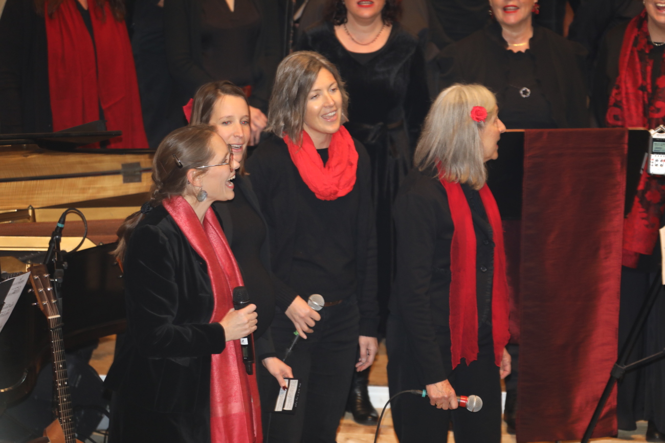 Dem Chor gelang es, bereits in den ersten Takten den musikalischen Funken zu zünden. Die stimmliche Ausdruckskraft verlieh den Texten eine einfache Würde in ihrer Bedeutung. Sie waren feurige Zugeständnisse an den Glauben, Ausdruck von Hoffnung, Sehnen und Vertrauen. Mitsingen, mitsummen und sich im Rhythmus wiegen waren Ausdruck der tiefen Empfindungen des Publikums. Zusammen mit dem Mitklatschen fügte sich das Publikum dadurch in das fein abgestimmte Kollektiv des Chores und der Band ein.