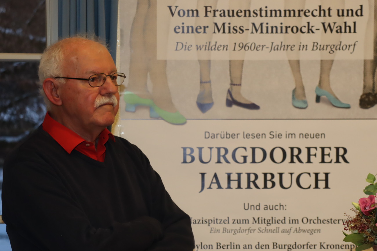 Heinz Däpp, Journalist und Satiriker, erzählte an der Vernissage auf mitreissende Art über die aufregende Zeit als Redaktor beim «Burgdorfer Tagblatt» in den wilden 1960er-Jahren und unterhielt die Anwesenden mit satirischen Texten. Als junger Journalist rüttelte er die Gesellschaft politisch auf und stellte die Doppelmoral in Frage, was der Beitrag im BJB verdeutlicht.