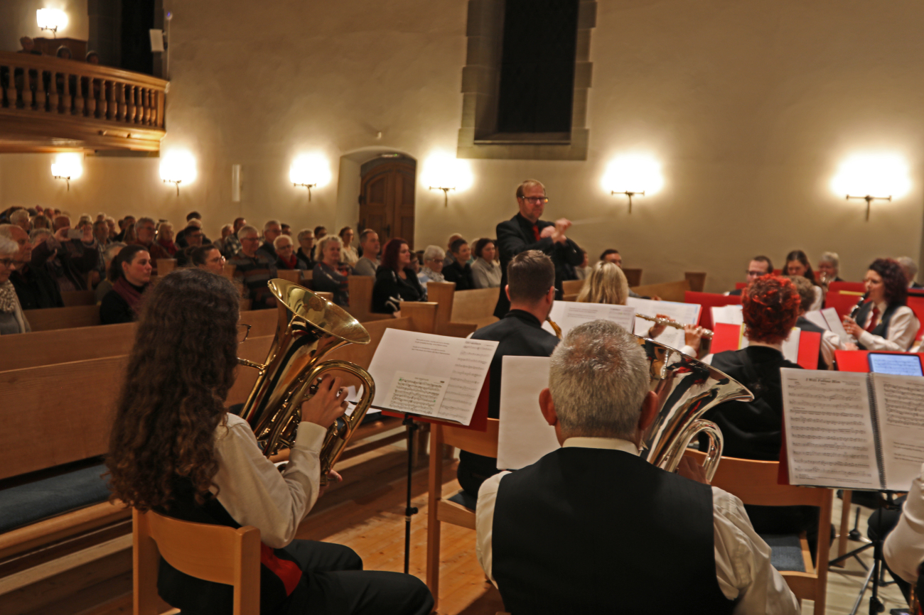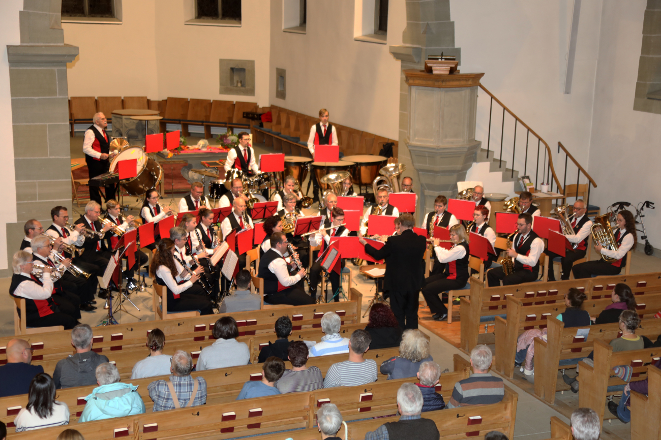 Mitreissend hallte gleich zu Beginn die «Fanfare Jubiloso» durch die Kirche, gefolgt von «La Storia», welche viele Erinnerungen an eigene Geschichten und selbst Erlebtes weckte. Geschichten, welche in jedem Alter faszinierend sind, führten als roter Faden durch die konzertanten Darbietungen, wie Moderator Simon Schütz einleitend erklärte. Er bot Einblicke in die Geschichten der Komponierenden und Arrangeure/-innen, lud dann aber dazu ein, eigene Lebens-