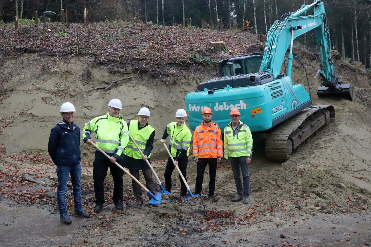 Der Baustart erfolgte vergangene Woche mit dem Spatenstich. Aushub und Rückbauarbeiten sollen bis Juni 2026 vollendet sein, damit danach der Werkleitungsbau und die Betonbauarbeiten in Angriff genommen werden können. Der Innenausbau geschieht in der ersten Hälfte des Jahres 2027, die Abschlussarbeiten erfolgen im Sommer 2027. Die voraussichtliche Inbetriebnahme ist für den Herbst 2027, die Wiederaufforstung im Frühjahr 2028 geplant. Die Investitionskosten betragen rund 5 Millionen Franken. Die Trinkwasserversorgung ist auch während der Bauzeit stets gewährleistet.