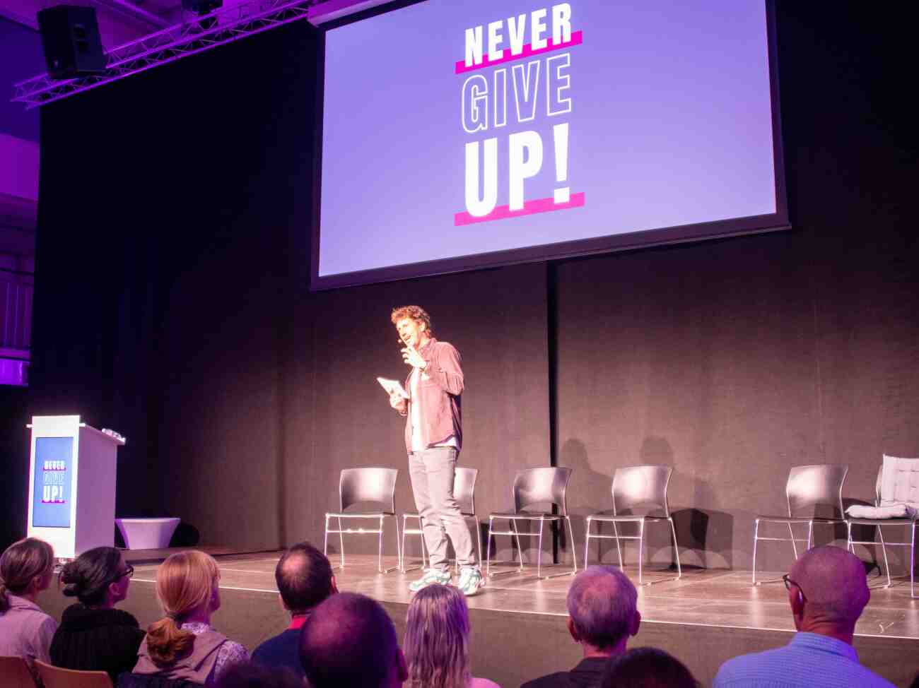 Brunner waren einst Pioniere der Schweizer Wasserfitness. Doch Ende 2016 schlug das Schicksal zu. Auf einer Reise durch Südamerika wurden sie mit einem gefährlichen Virus infiziert. Matthias Brunner überstand die Krankheit ohne grössere Komplikationen. Edith Locher Brunner kämpfte jedoch monatelang im Berner Inselspital ums Überleben. Das linke Bein und drei Zehen mussten amputiert werden. Die Lunge trug bleibende Schäden davon. Nach dem Aufenthalt im Inselspital folgte eine lange Zeit im Schweizer Paraplegiker Zentrum. Kleine Hoffnungsschimmer ermunterten Edith Locher Brunner immer wieder, nicht aufzugeben. «Never give up!» wurde aber fortan auch für ihren Mann Matthias zum Leitspruch. Für ihn war es nie eine Option, Edith aufzugeben. Obwohl Edith Locher Brunner sehr lange nicht sprechen konnte, fanden die beiden einen eigenen Weg, sich auszutauschen. Und ihre Verbindung blieb bemerkenswert stark – bis heute! Das Schicksal von Edith Locher Brunner und ihrem Mann Matthias machte an der Podiumsdiskussion auf bewegende Weise deutlich: «Niemals aufgeben» gilt nicht nur für sportliche oder berufliche Erfolge, sondern vor allem für die härtesten Prüfungen des Lebens.