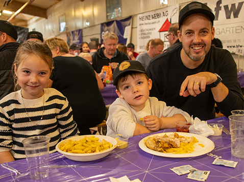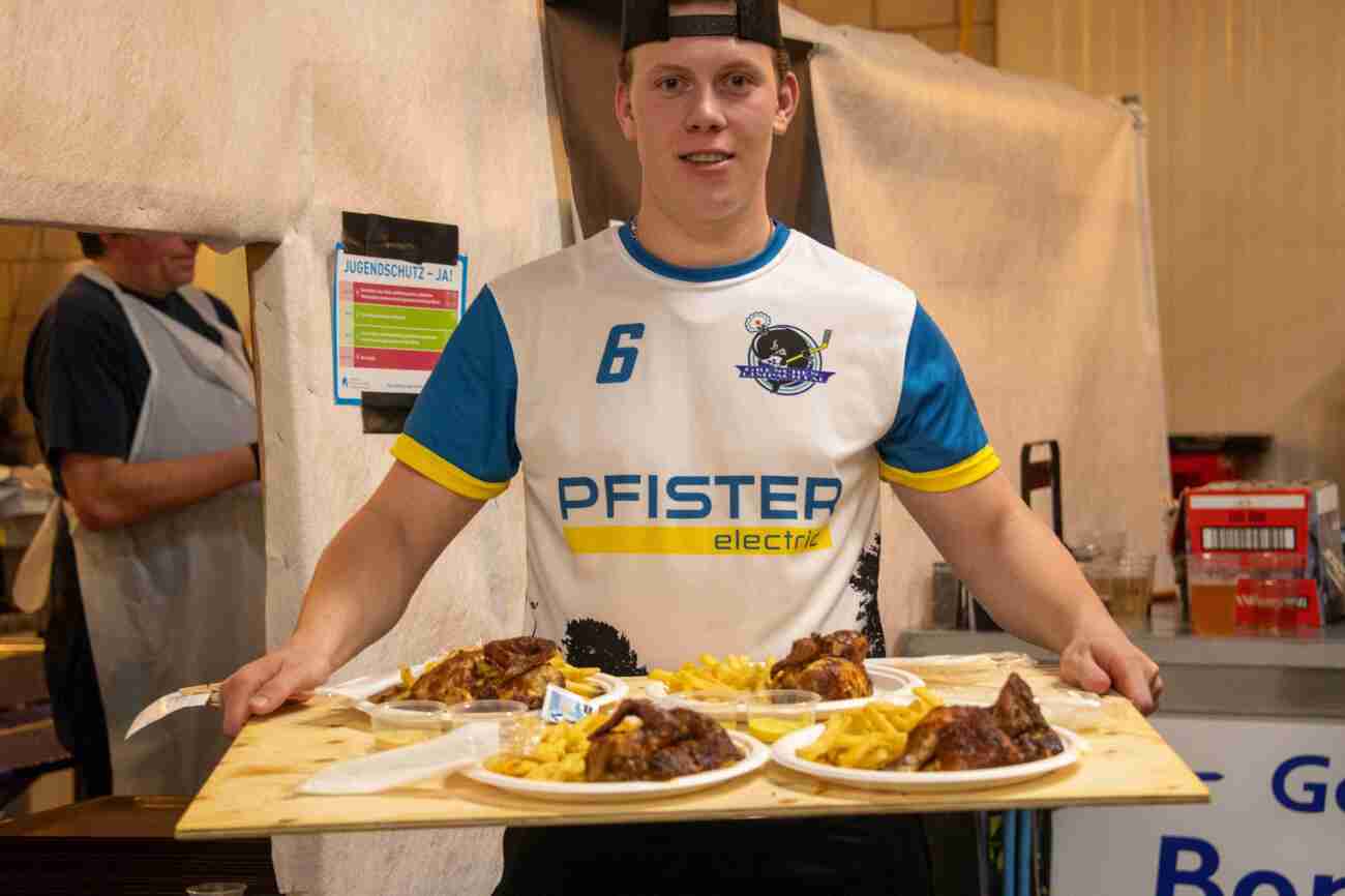 Bereits zum 19. Mal organisierte der SHC Grenchen-Limpachtal den «Güggeli-Tag». Bis am Samstagabend brachten die engagierten Clubmitglieder und Helfer/innen mehr als 800 halbe Poulets und ebenso viele Portionen Chicken Nuggets unter die hungrigen Gäste. An der Theke konnten auch «Güggeli» und Pommes zum Mitnehmen bestellt werden. «Ohne die zahlreichen Helferinnen und Helfer könnten wir diesen Event nicht durchführen», sagt Stefan Rindlisbacher, Präsident des SHC Grenchen-Limpachtal. Und er freut sich bereits auf das Jahr 2026: «Dann feiern wir das 20-Jahr-Jubiläum dieses Anlasses!» Ein paar Marktstände, eine Tombola sowie die Bar mit DJ bereicherten den «Güggeli-Tag» in Kummer’s Güggelihalle im Schachen.Petra Schmid