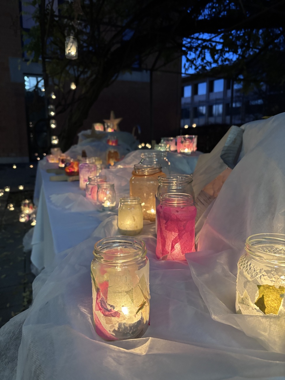 Das Team der Aktivierung hat lichterfüllte Akzente gesetzt: drinnen in Form einer leuchtenden Winterlandschaft; draussen haben Sterne und Kerzenlichter den Weg der vielen Besuchenden beleuchtet.