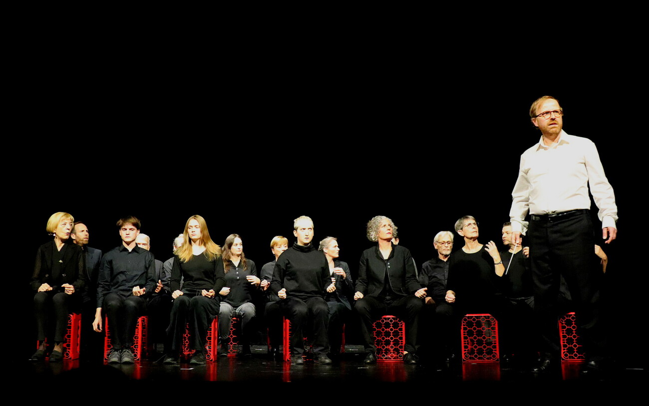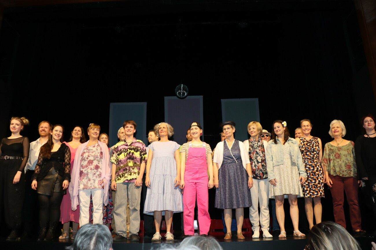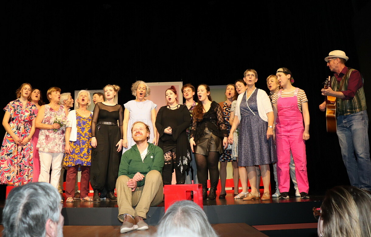 Drei schwarz gekleidete Erzählerinnen führen mit Witz, Wärme und Charme durch die Geschichte. Sie sind zugleich spürbarer Teil der Gruppe, verschieben Elemente des Bühnenbilds, singen im Chor mit. Die Musik spielt eine bedeutende Rolle. Die Chorleiterin und Dirigentin Therese Lehmann hat aus den engagierten Laienschauspielenden einen eindrücklichen Chor geformt, der mit berührenden Gesängen und schauspielerischen Leistungen begeistert. Jede und jeder verkörpert die ihm/ihr zugeteilte Rolle überzeugend. Zudem schafft das Bühnenbild mit wenigen, wirkungsvollen Elementen eine authentische Atmosphäre. Neben erheiternden Momenten schwingen auch traurige Töne mit. Themen wie Sünde, Tod, Liebe und Lebenssinn berühren das Publikum.