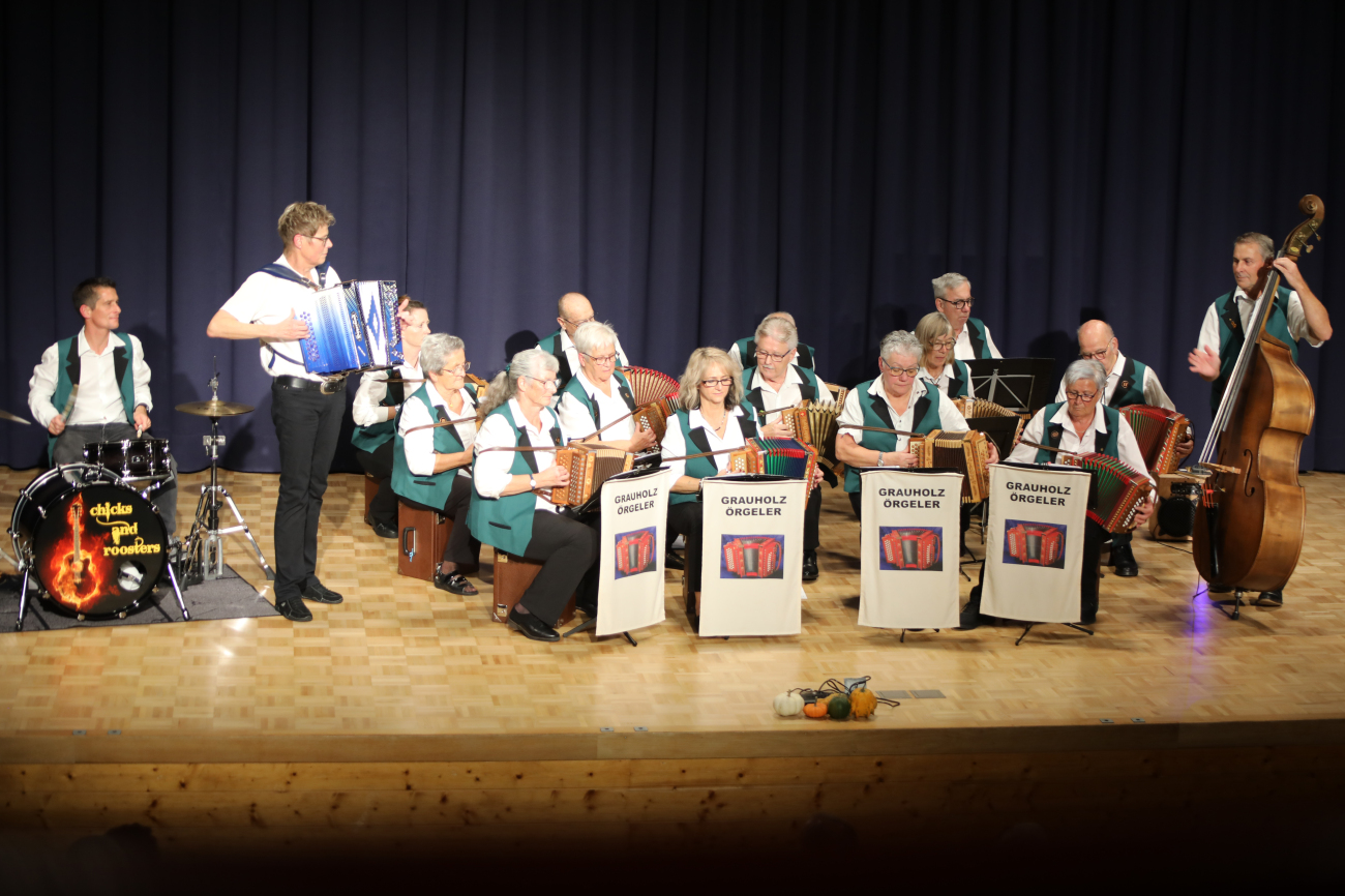 05.11.2025 Jegenstorf, Musik, Jegenstorf, KulturEs war ein fröhlicher Konzertabend, das traditionelle Jahreskonzert der Grauholz-Örgeler im Kirchgemeindehaus in Jegenstorf. Einziger Wermutstropfen für die am vergangenen Samstagabend zahlreich erschienene Fangemeinde war die Mitteilung der Grauholz-Örgeler-Präsidentin Kathrin Emmenegger, dass dieses 18. Konzert wohl der letzte grosse Anlass des Vereins sein werde. «Wir sind in die Jahre gekommen», meinte die Präsidentin. «Es ist auch für uns wie in vielen anderen Vereinen schwer, Nachwuchs zu rekrutieren. Kleinere Auftritte für verschiedene Anlässe stehen jedoch in unterschiedlichsten Formationen nach wie vor auf dem Programm», versicherte Kathrin Emmenegger.