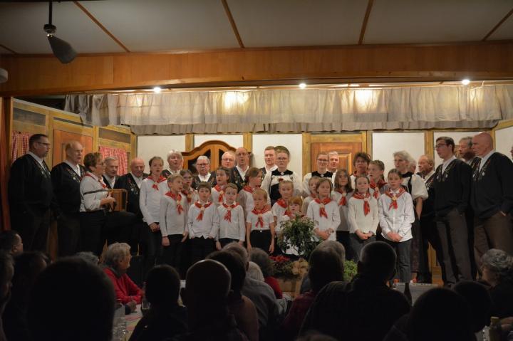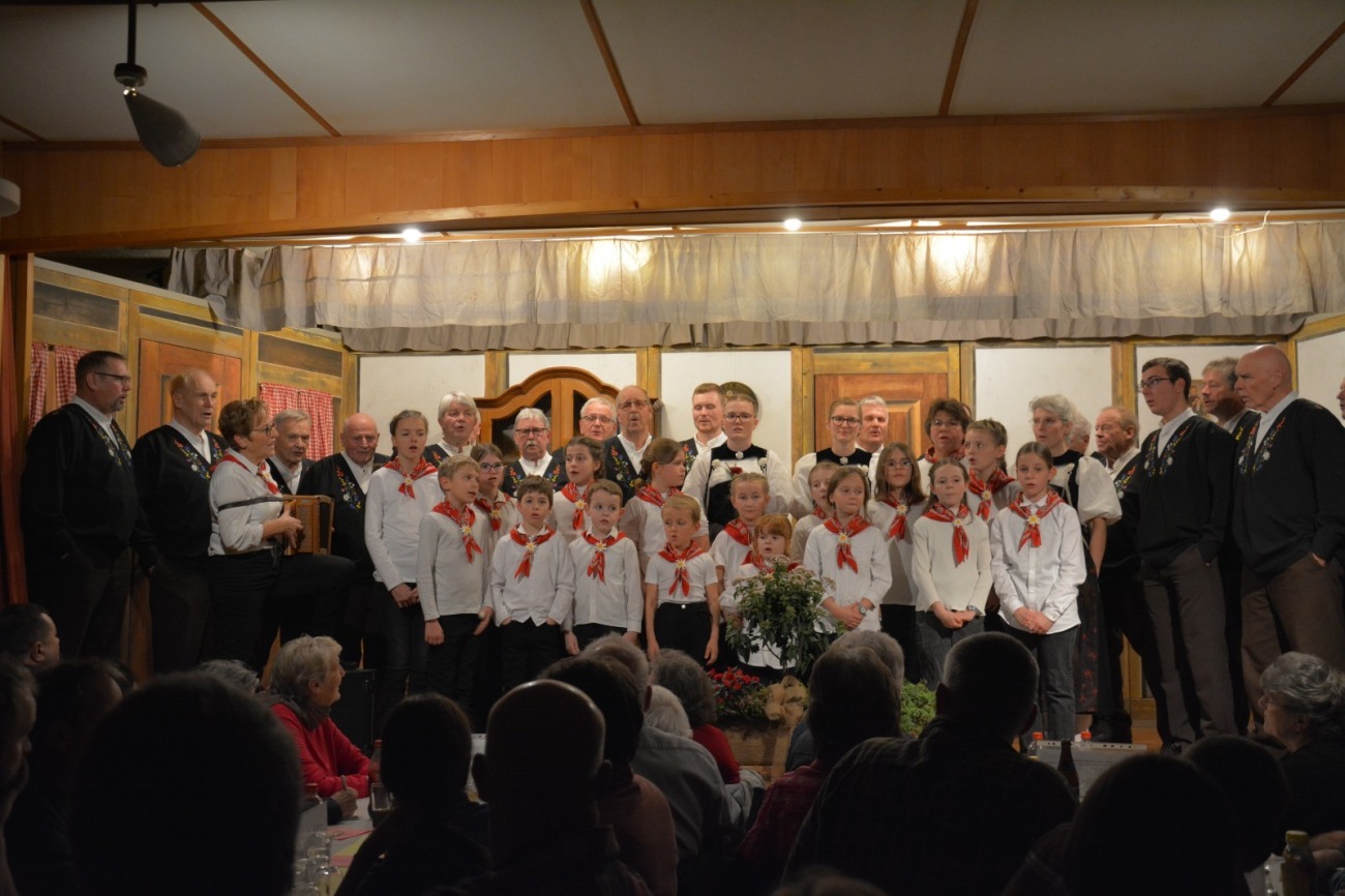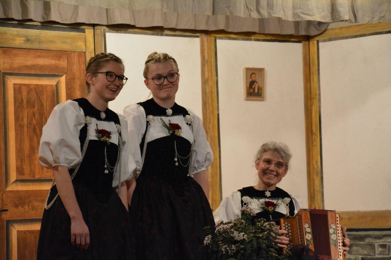Die traditionelle Kleinformation feiert dieses Jahr ihr 20-Jahr-Jubiläum. Nicht zuletzt deshalb konnten die Zuhörerinnen und Zuhörer eine neue Kleinformation geniessen. Alina Rothenbühler und Andrea Krähenbühl sangen ein wunderschönes Duettlied. Sie wurden von der Dirigentin des Chörlis, Ursula Burkhalter, am Örgeli begleitet. Matthias Stucki brachte die Anwesenden mit seinen Witzen zum Lachen und überbrückte so die Pausen. Zwei weitere eindrucksvoll vorgetragene Lieder handelten vom Herbst in der Natur und dem Herbst des Lebens.