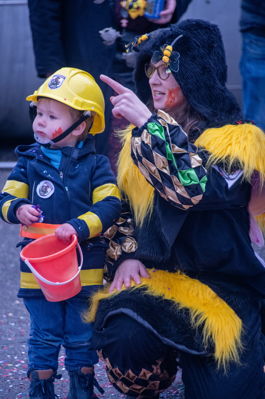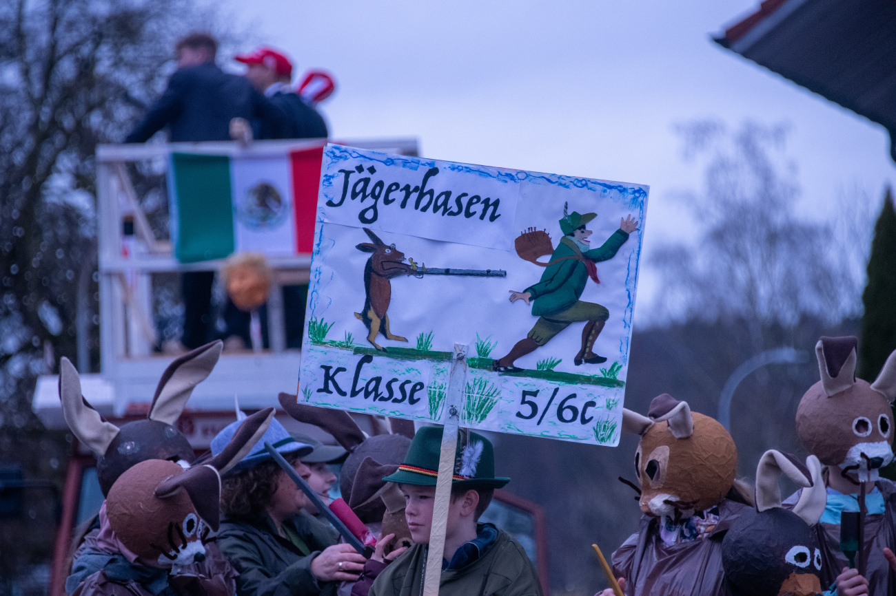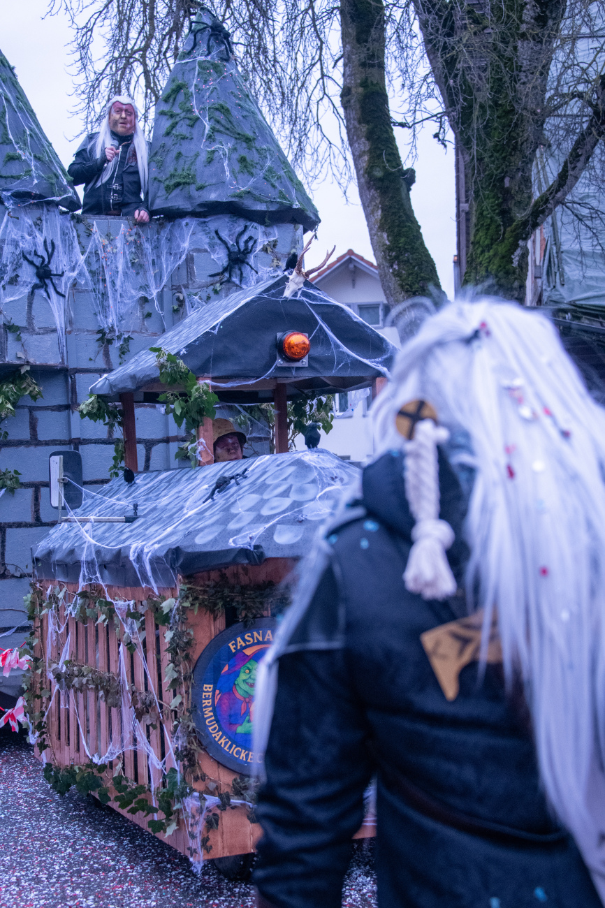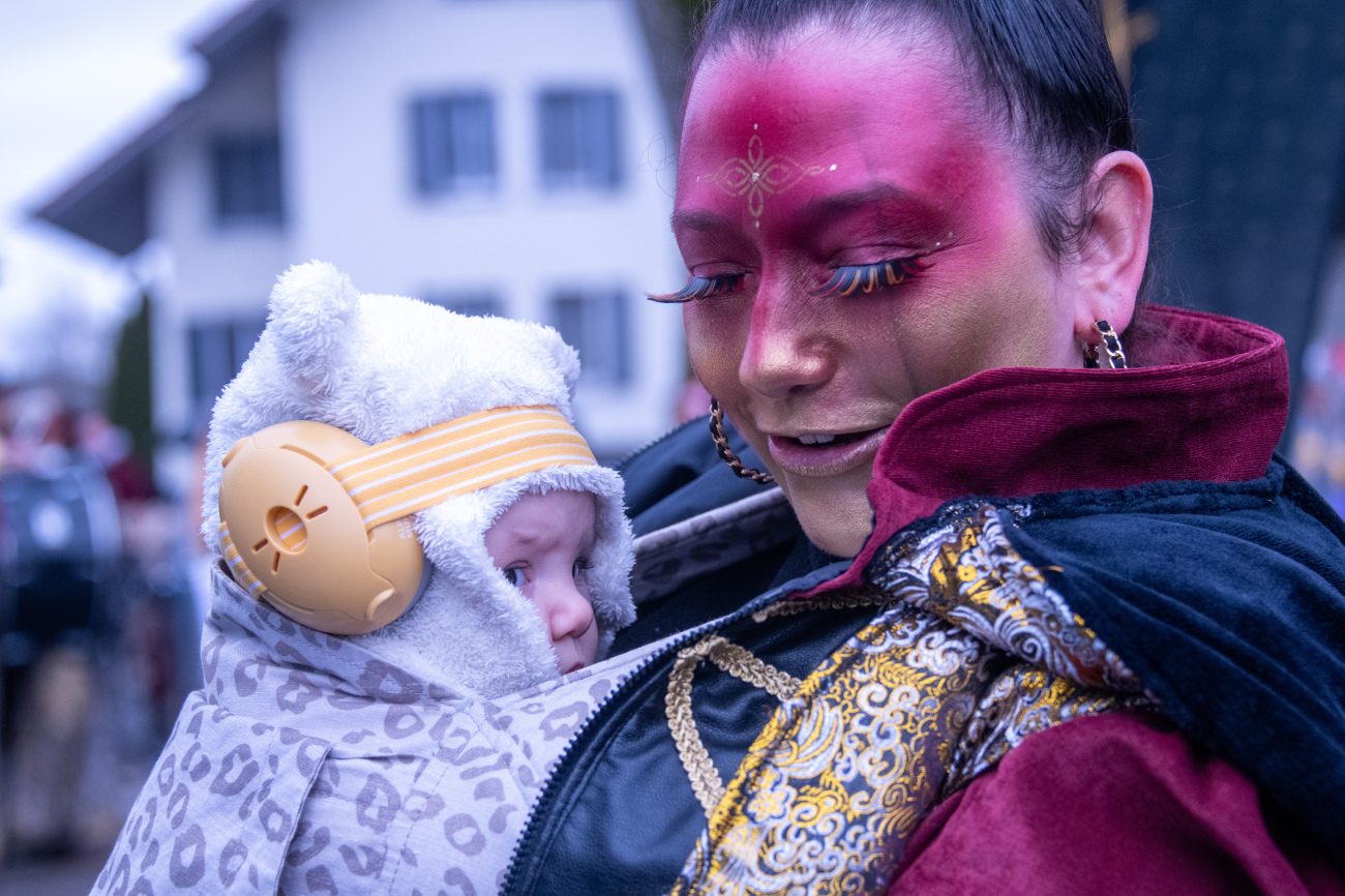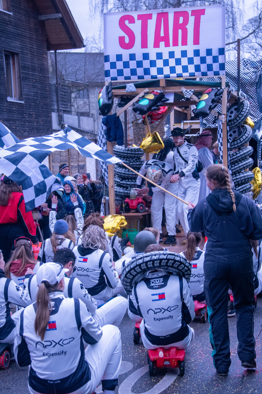 Pünktlich um 14.05 Uhr am Samstag, 21. Februar 2026, ertönte dann der legendäre Knall, der den Fasnachtsumzug in Gang setzte. Genau zum Start des Umzugs hörte der Regen auf, als hätte er dem närrischen Treiben bewusst Platz gemacht. Angeführt von der ortsansässigen Guggenmusik «Fädereböck» zogen kreative Wagen und witzig verkleidete Gestalten durch das Dorf. Einige Gruppen präsentierten ihre Sujets mit originellen Ideen, die für laute Lacher sorgten. Fast die gesamte Dorfbevölkerung säumte die Strassenränder, wetterbedingt warm eingepackt und gut gelaunt. Neben Sugus und anderen Süssigkeiten wurden sogar frisch gegrillte Würste in die Menge gereicht – eine willkommene Überraschung an einem eher kühlen Tag. Konfetti in allen erdenklichen Farben wirbelten durch die Luft und Partymusik sorgte für ausgelassene Stimmung – getreu dem Song der «GrossstadtEngel»: «Wir haben oben gute Laune und unten gute Laune, vorne gute Laune und hinten gute Laune!»