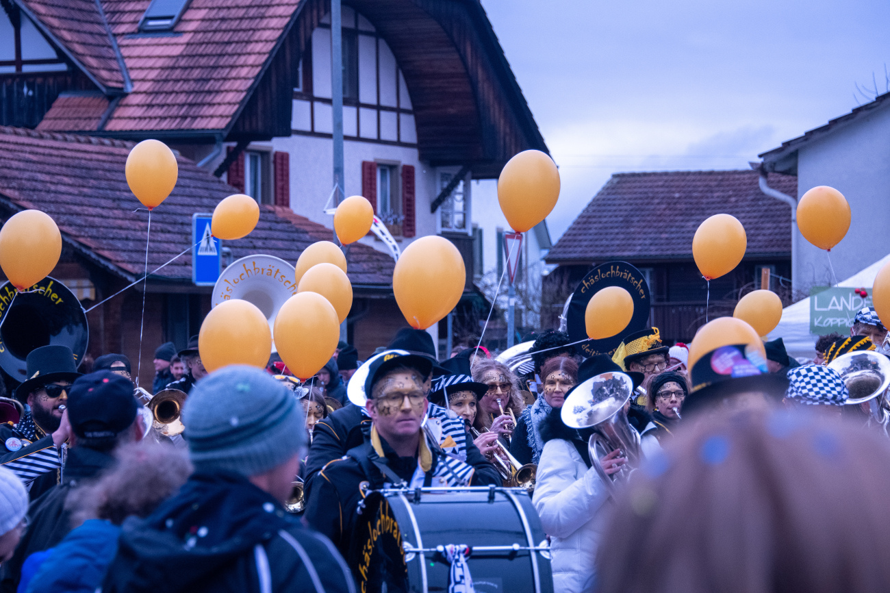 23.02.2026 Aktuell, Aktuell, Foto, KoppigenAm vergangenen Wochenende stand Koppigen Kopf: Unter dem Motto «verchert» startete die Koppiger Fasnacht am Freitag mit der traditionellen «Gügglete», an welcher der Koppiger «Güggu» freigelassen wurde. Die närrischen Tage konnten beginnen! Die Beizenfasnacht am Freitagabend dauerte bis in die Morgenstunden.