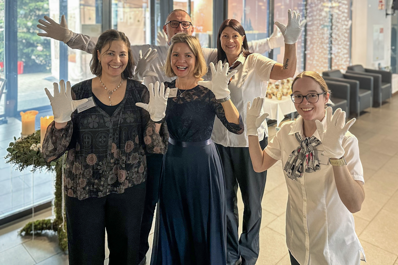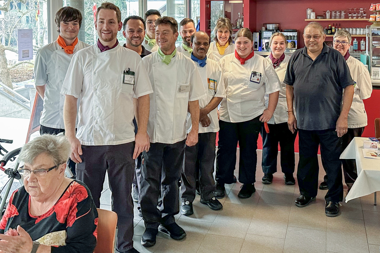 Festlich gekleidet sorgten alle Mitarbeitenden für einen aufmerksamen Service. Auch die Geschäftsleitung unterstützte im Service und übernahm dort Aufgaben, wo Hilfe benötigt wurde. Dieses gemeinsame Mitwirken prägte den Anlass sichtbar.