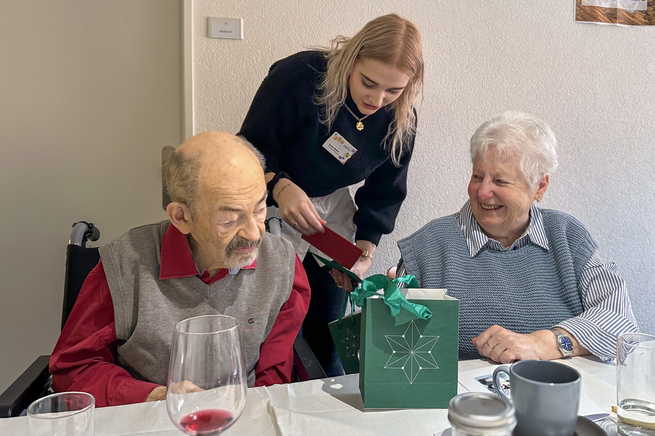 Zum Abschluss des Festes erhielten alle Bewohnenden ein Weihnachtsgeschenk des Wohnparks Buchegg. Die Reaktionen reichten von stiller Freude bis zu Umarmungen und dankbaren Gesten. Der Anlass machte deutlich, welchen Stellenwert Gemeinschaft im Wohnpark Buchegg hat – und weshalb viele Bewohnende ihn als ihr Zuhause bezeichnen.