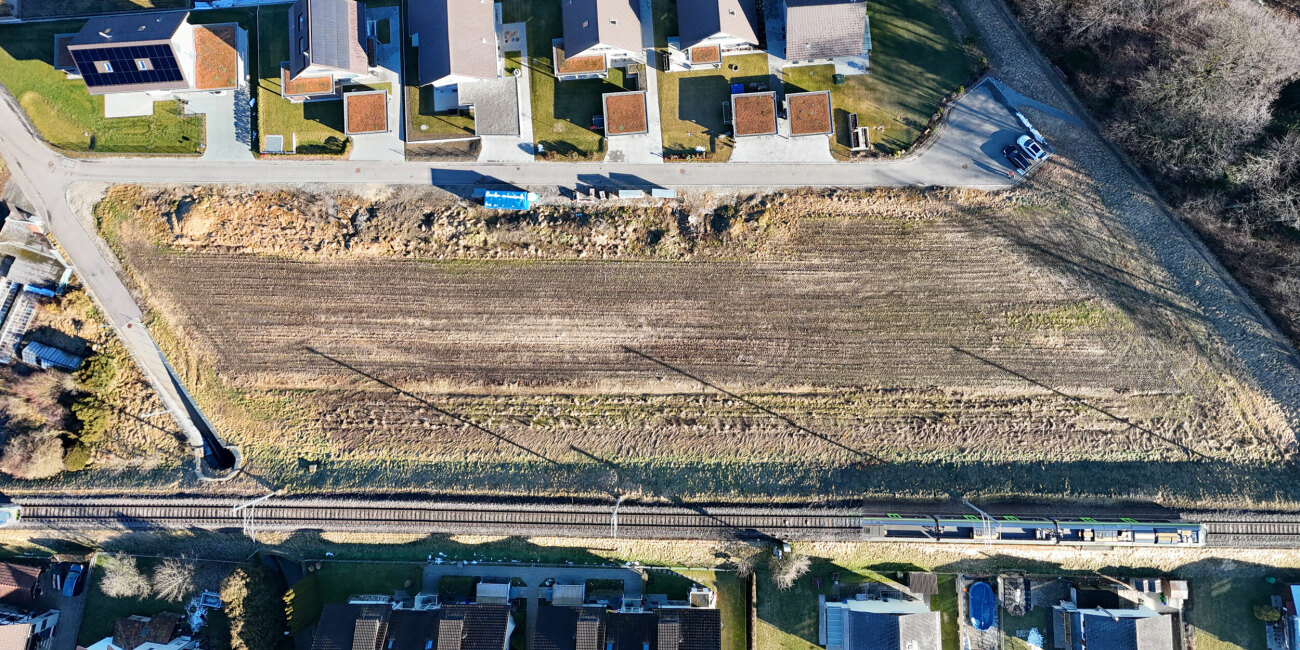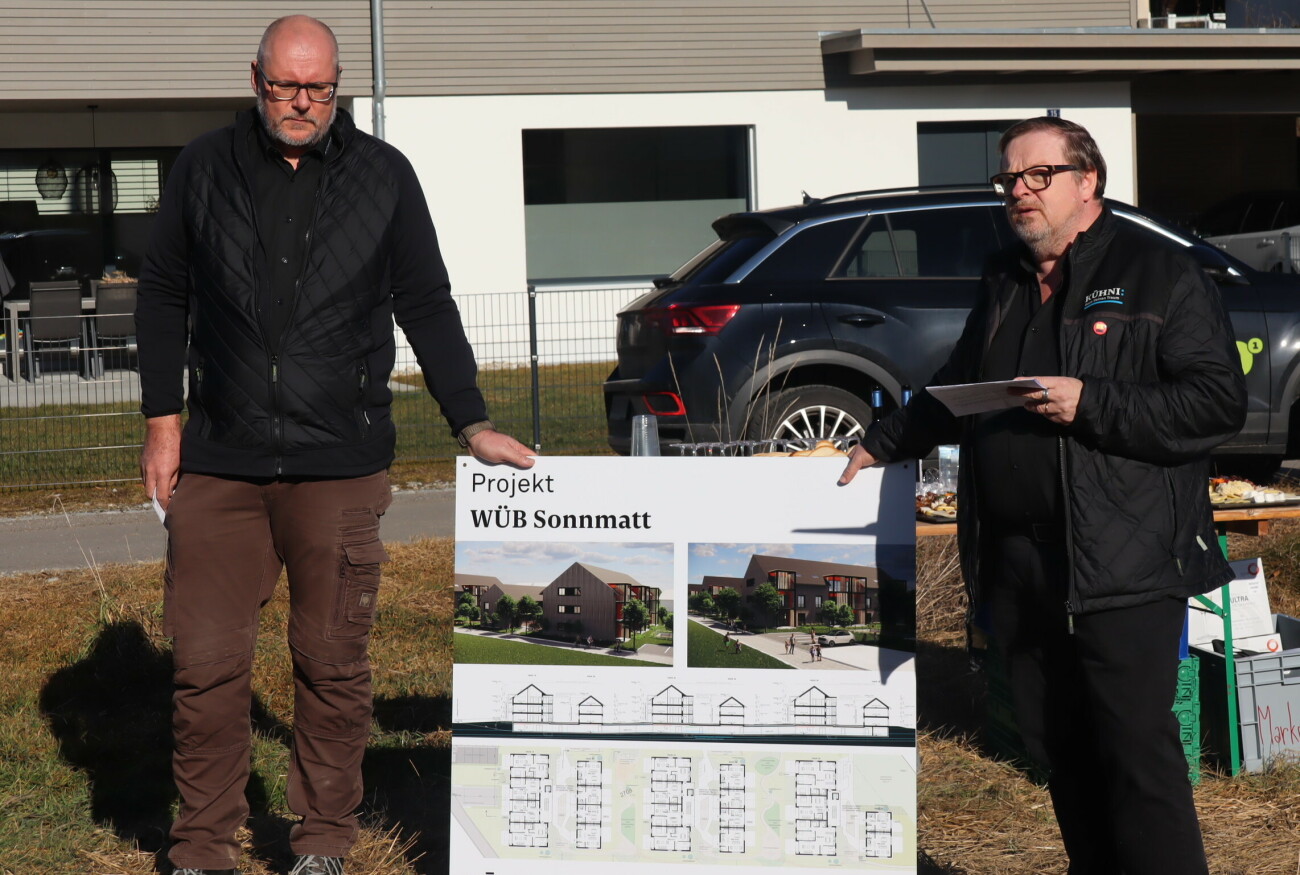 Auf einem abgeernteten Maisfeld zwischen der Eisenbahnlinie und den Einfamilienhäusern entstehen zehn zweigeschossige Reiheneinfamilienhaus-Einheiten und drei dreigeschossige Mehrfamilienhäuser mit total 43 Mietwohnungen und eine Einstellhalle mit 55 Plätzen. Die Wohnungsgrössen liegen zwischen 2,5 und 4,5 Zimmern.