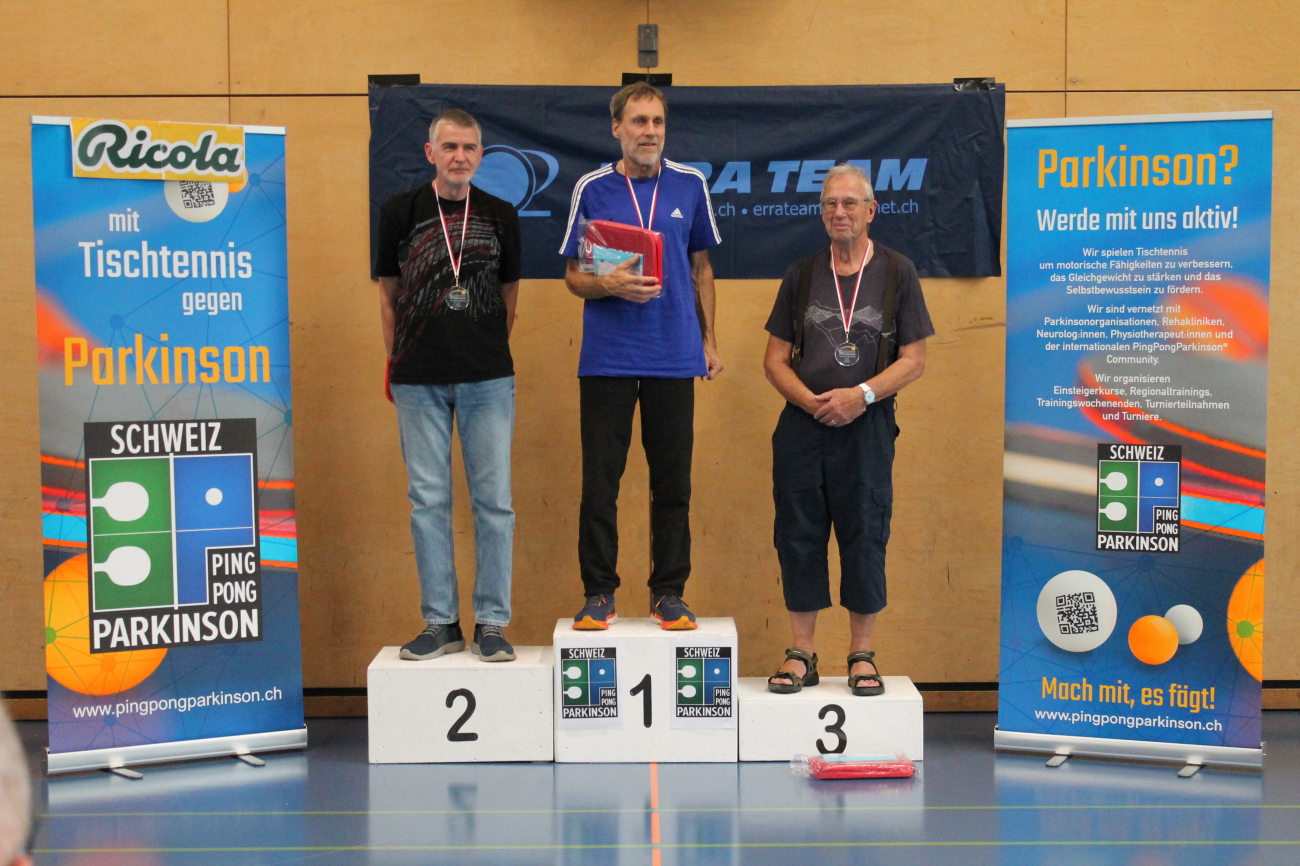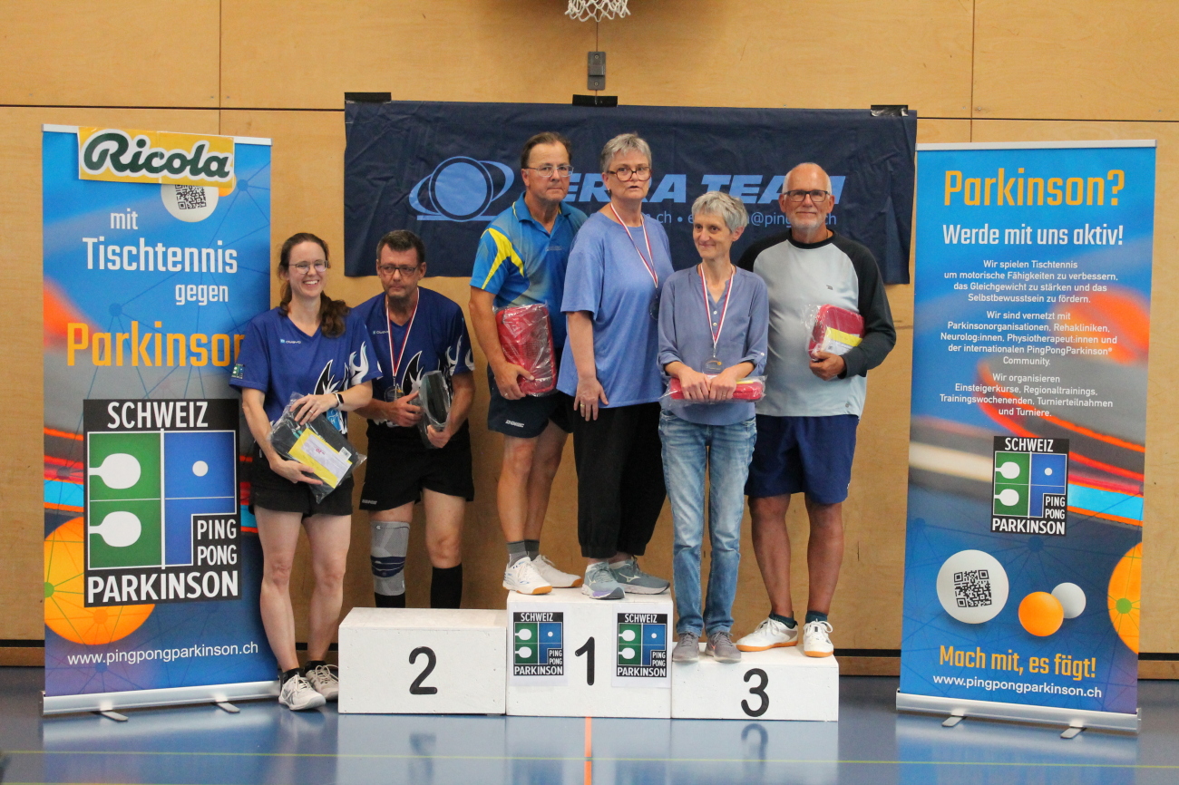 01.10.2025 Sport, Sport, Aktuell, Gesellschaft, VereineEin erfolgreicher Auftritt für das PingPongParkinson-Regionaltraining Espace Mittelland: Thomas Walser holte an der ersten Schweizermeisterschaft in Luzern Silber in der Herren Kategorie 2, Markus Jenal sicherte sich gemeinsam mit Christine Maertens Bronze im Mixed-Doppel und Thomas Schlup verpasste als Vierter in der Kategorie Herren 2 das Podest nur knapp. Damit unterstreicht das Regionaltraining, getragen von Tischtennistraining.ch, seine kontinuierliche Aufbauarbeit für Menschen mit Parkinson und anderen Beeinträchtigungen. Die Premiere in Luzern mit Klassierungsspielen am Samstagvormittag, Doppel-KO-Serien am Nachmittag und packenden Einzelwettbewerben am Sonntag bot den idealen Rahmen für starke Leistungen und viel Gemeinschaft.